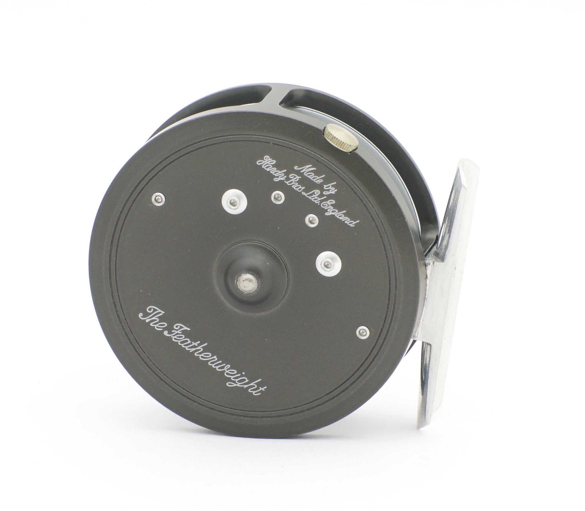 For sale here is a Hardy Featherweight fly reel in unused condition. Made in England. 2 7/8" diameter. Smooth alloy foot. Two-screw latch plate with single-screw reversible nickel silver line guard. RHW or LHW. Hardy stated capacity of DT4 + 40m / WF5 + 55m. Comes with its original blue and cream Hardy zippered case, original box in fine condition, and paperwork.