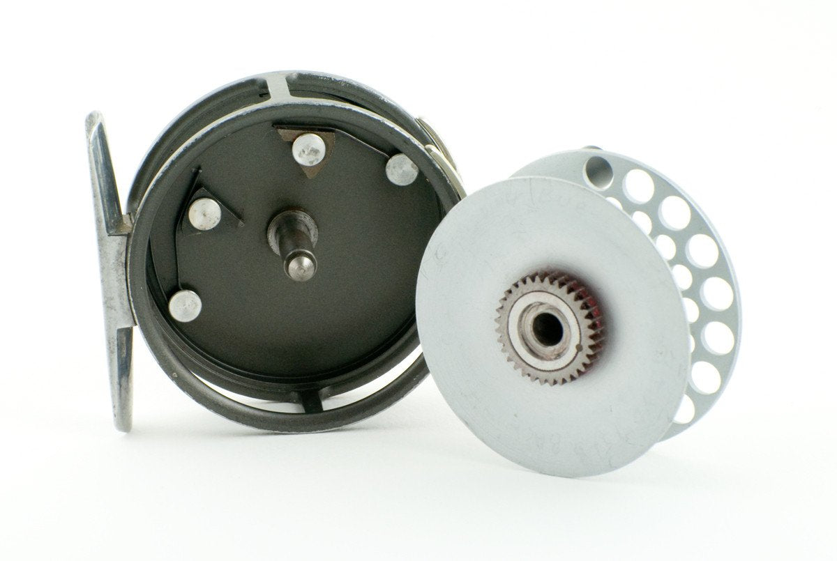 For sale here is a Hardy Flyweight fly reel. Smooth alloy foot. Two-screw latch plate with a heavy-duty and reversible U-shaped nickel silver line guard. RHW or LHW. A nice fishing reel with minor signs of use and no mechanical issues.