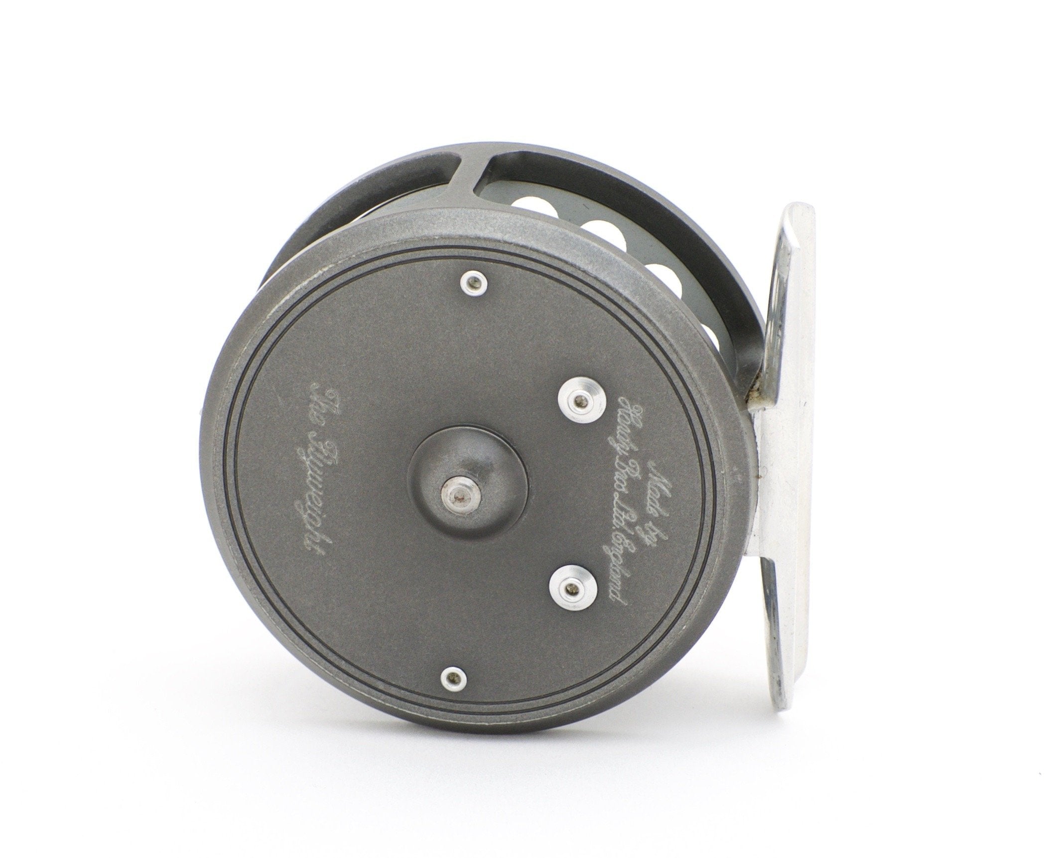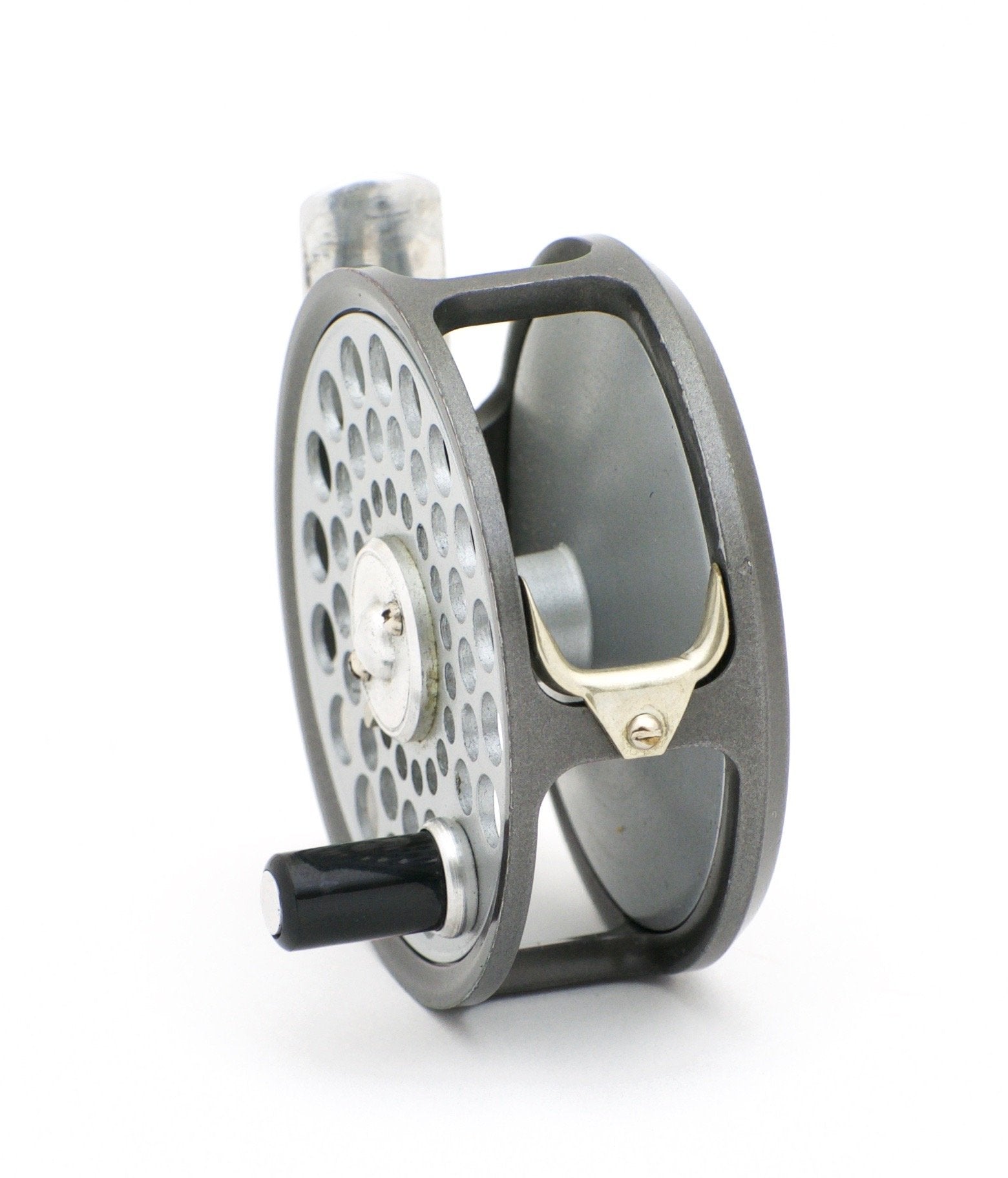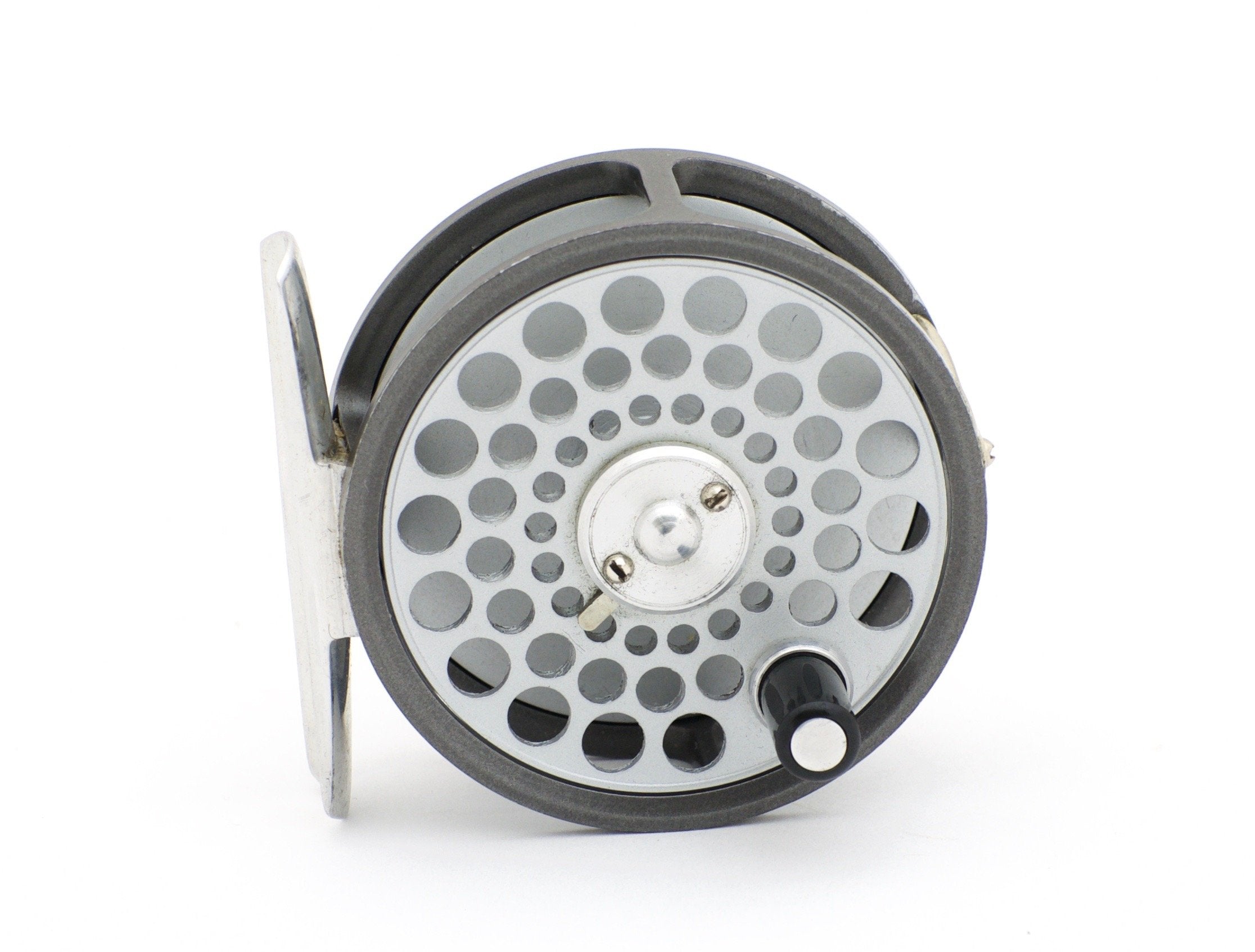 For sale here is a Hardy Flyweight fly reel. 2 1/2" diameter. Single screw reversible nickel silver line guard. Smooth alloy foot. Two-screw latch plate. RHW or LHW. Excellent used condition. Capacity is up to a DT4 with no backing or a WF3+50yds. Comes with an original Hardy zippered case.