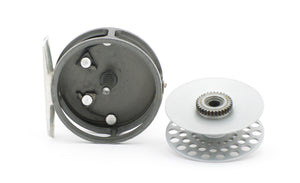For sale here is a Hardy Flyweight fly reel. 2 1/2" diameter. Two-screw latch plate with reversible U-shaped nickel silver line guard. RHW or LHW. Excellent used condition. Capacity is up to a DT4 with no backing or a WF3+50yds.