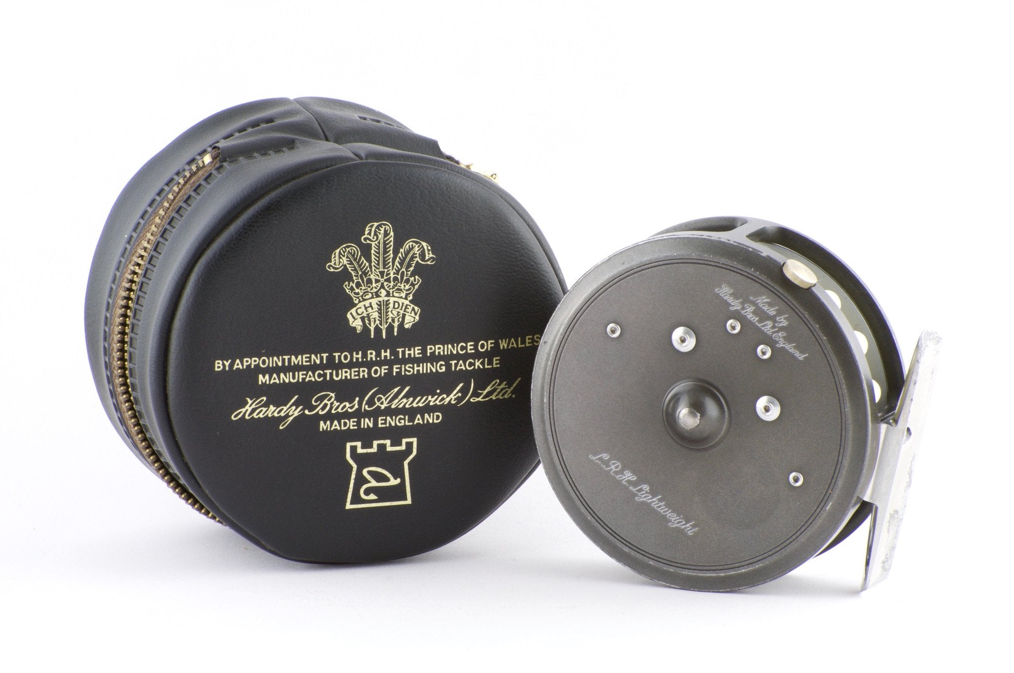 For sale here is a Hardy LRH Lightweight fly reel in fine mechanical condition. RHW or LHW. The reel shows use but remains structurally sound. No cracks or corrosion. Tensioner and springs are in fine condition. Capacity is DT5+55 or DT6+20. Comes with Hardy reel case.