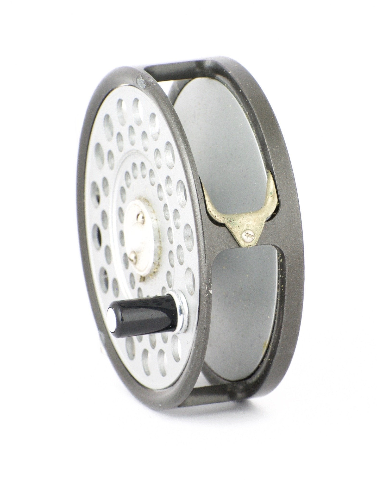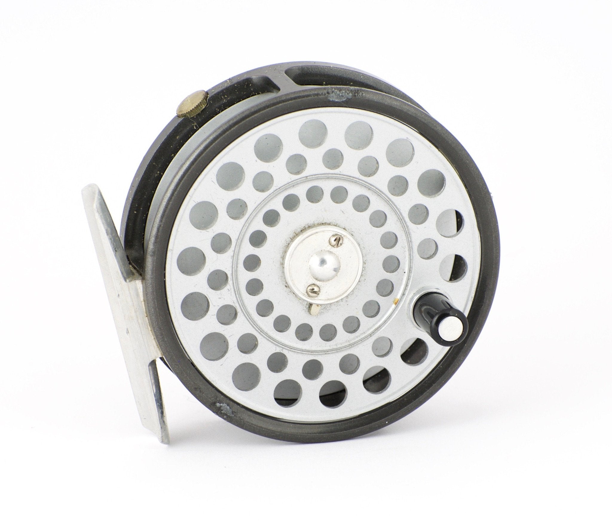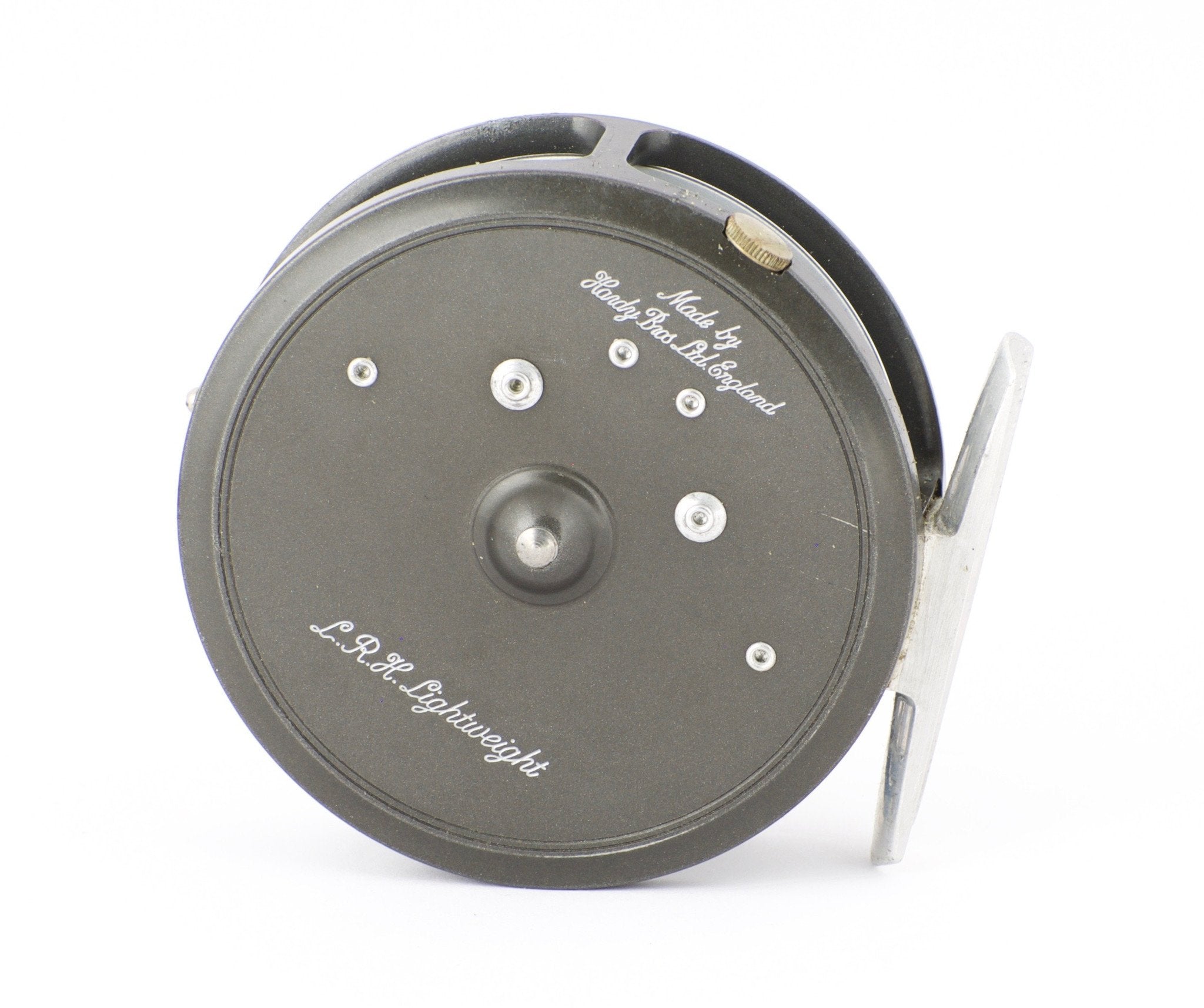 For sale here is a Hardy LRH Lightweight fly reel in excellent condition. One-screw reversible lineguard. Right or left hand retrieve. There are two areas of paint loss on the frame edge as can be seen in the photos. Tensioner and springs are in fine condition. Capacity is DT5+55 or DT6+20. Reel weight: 3.85 oz.