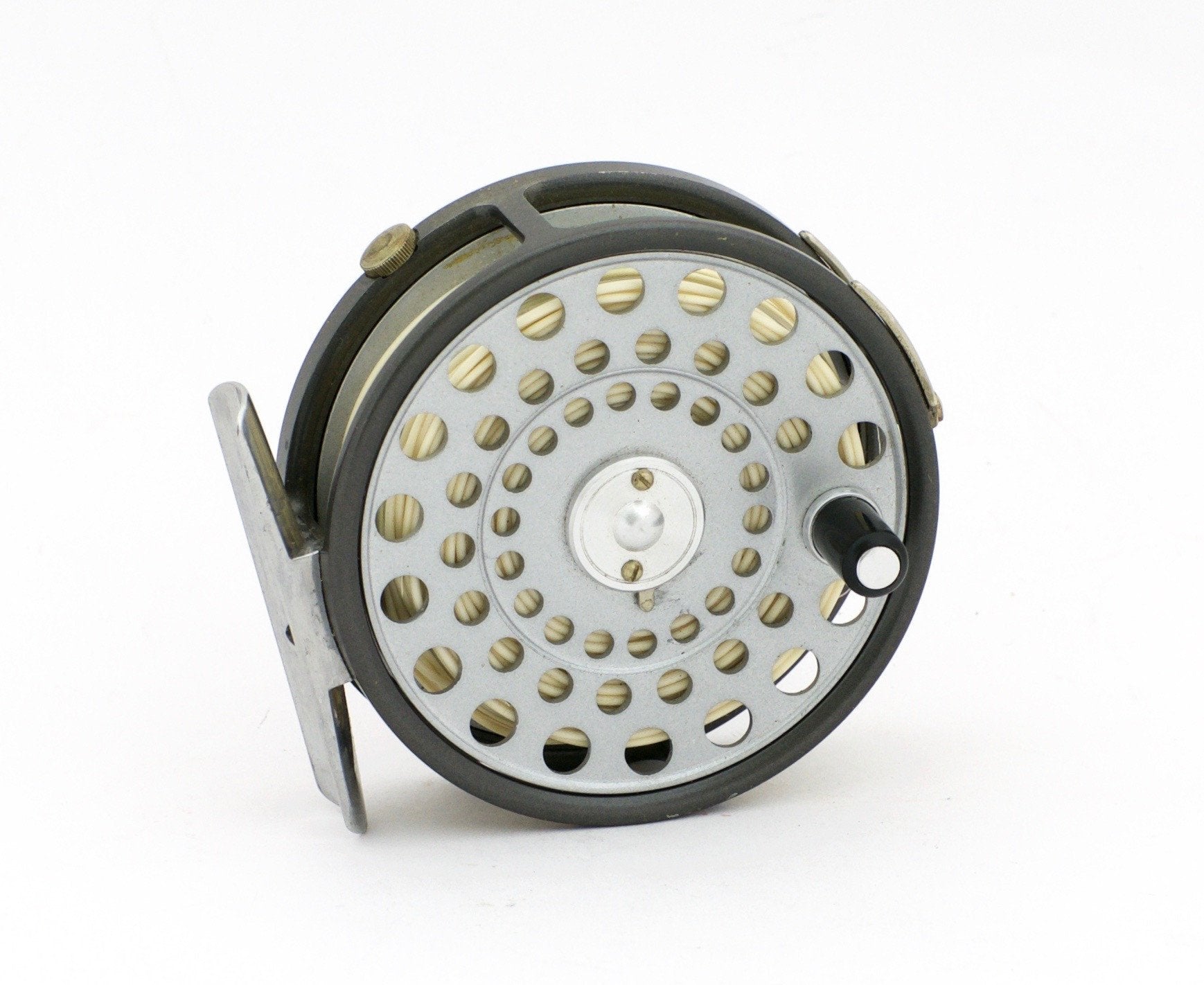 For sale here is a Hardy LRH Lightweight fly reel in excellent used condition. Made in England. Reversible two-screw U-shaped lineguard - easily flipped as are the pawls for RHW or LHW use. Comes with Hardy leatherette zippered pouch as well as line (Aircel DT6) and backing. Capacity is DT5+55 or DT6+20.