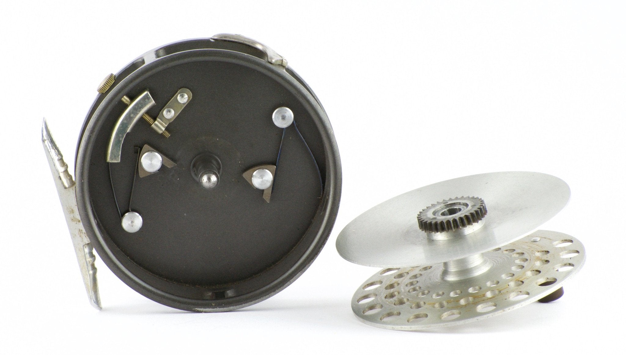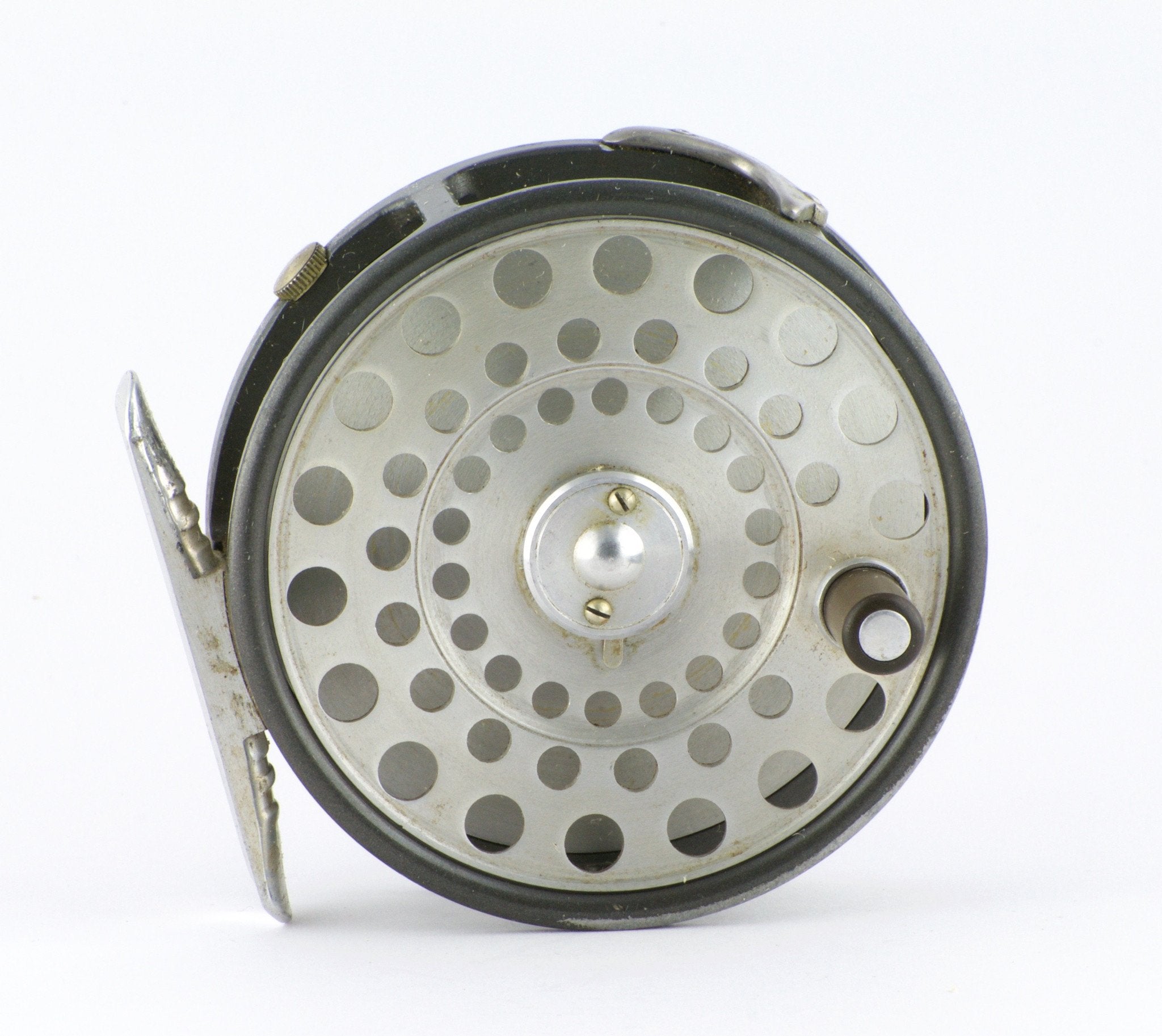 For sale here is a very scarce Hardy LRH Lightweight fly reel from the early 60's in excellent condition. The reel comes with a very uncommon half-ribbed alloy foot(see 1962 Hardy catalogue). Two-screw latch plate with a riveted L-shaped line guard mounted on top of the frame/pillar - RHW only. Solid and tight as they come. Tensioner works great.Cosmetic marks only. The reel weighs 3.5 oz. Comes with original Hardy box. Capacity is DT5+55 or DT6+20.