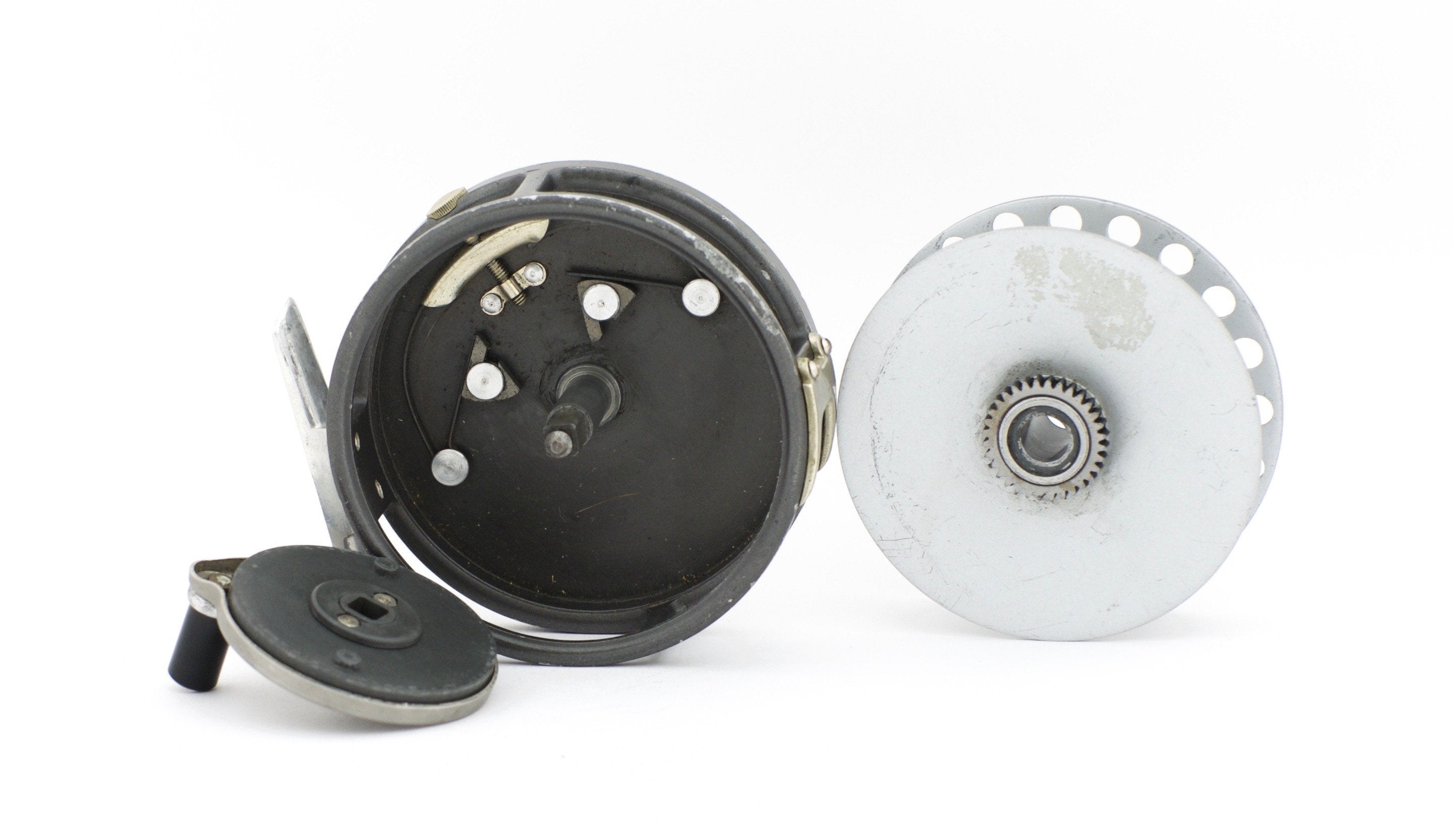 For sale here is a Hardy LRH multiplier fly reel and spare spool. Made in England. Excellent condition. Two-screw latch plate with two-screw heavy duty nickel silver line guard. RHW or LHW. The reel functions perfectly.