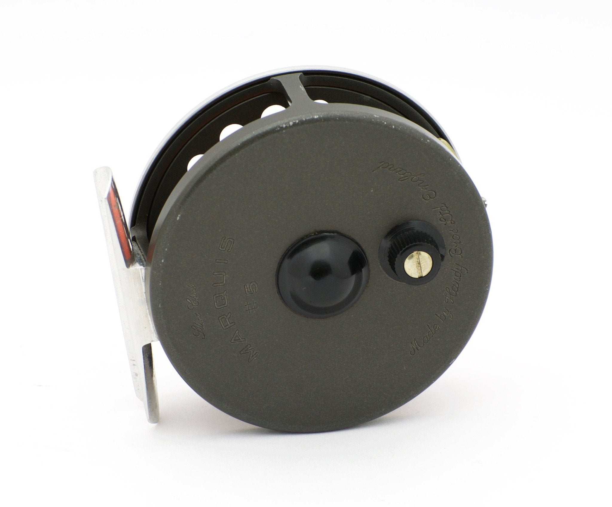 For sale here is a scarce silent check Hardy Marquis 5 fly reel. Excellent used condition with Hardy reel case. Left hand retrieve.