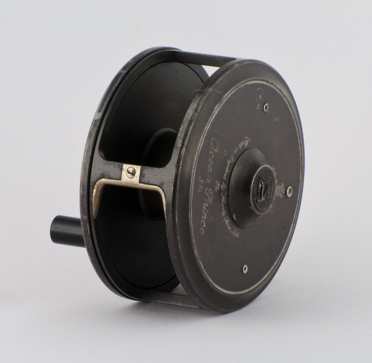 For sale here is a Hardy Ocean Prince - 3 3/4" diameter. 1 1/4" spool width. Medium size arbor. Anti-reverse. Adjustable drag, very strong. Palmable spool rim. Cosmetic use marks and good working condition. Full length ribbed brass foot - 2 1/2". The reel is setup for LHW but I believe it can be reversed, as well as the lineguard.