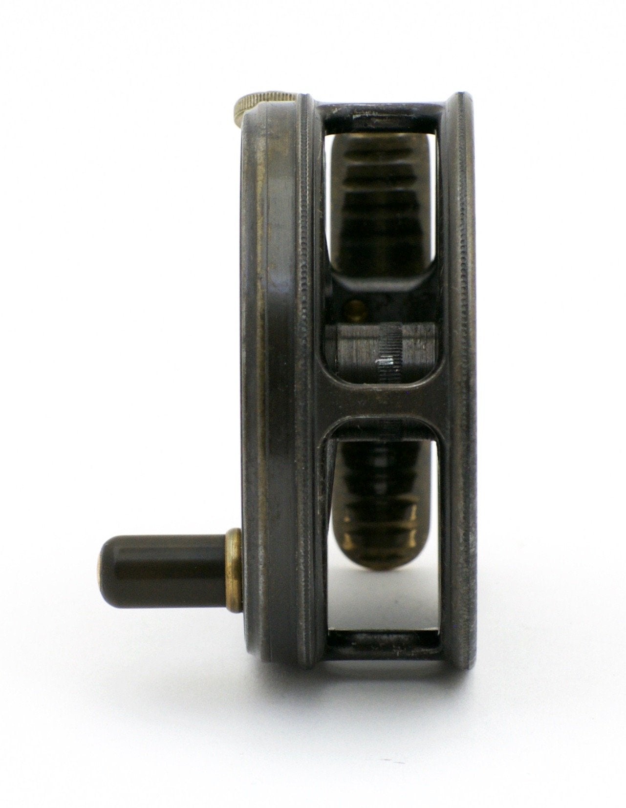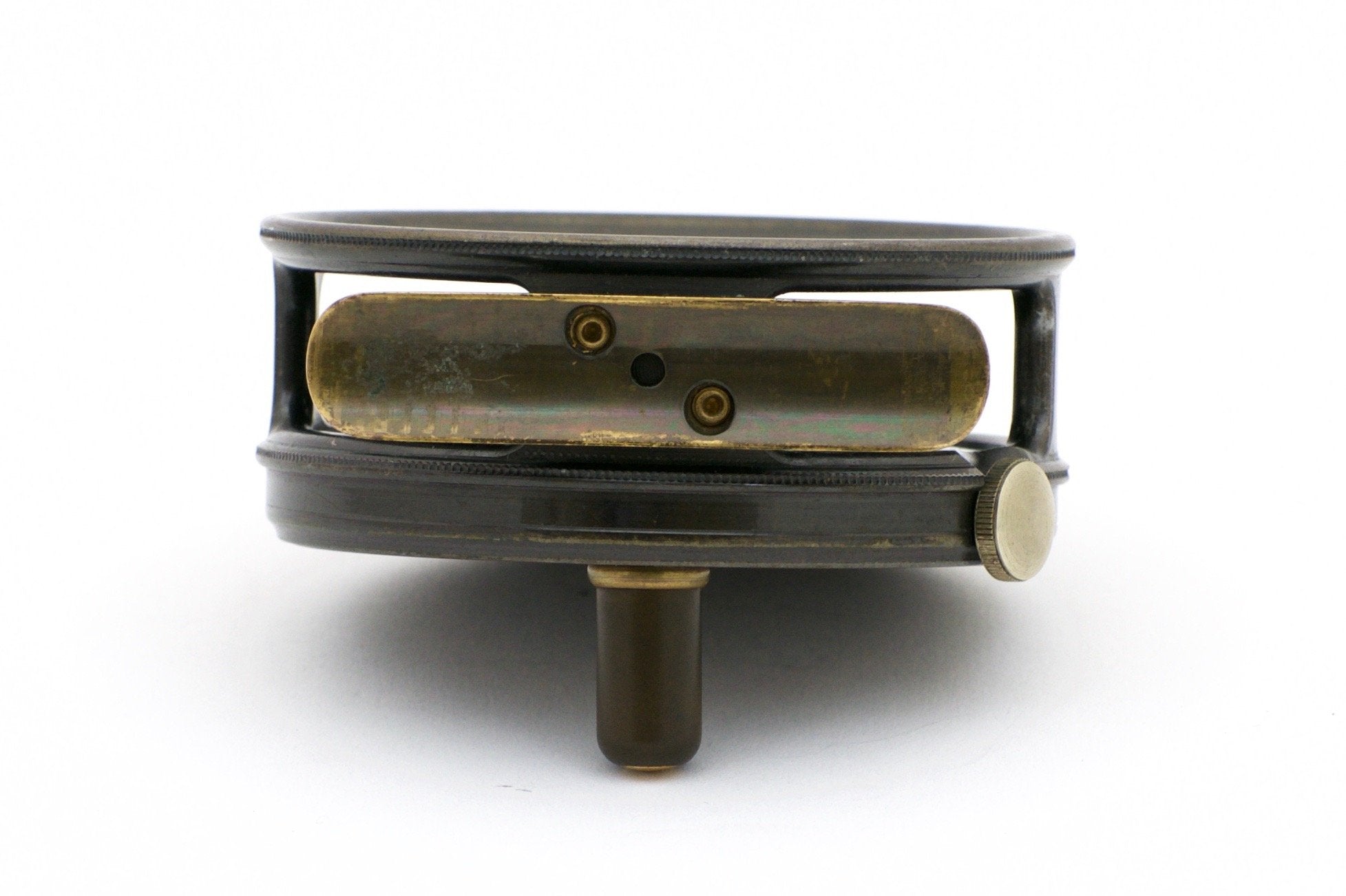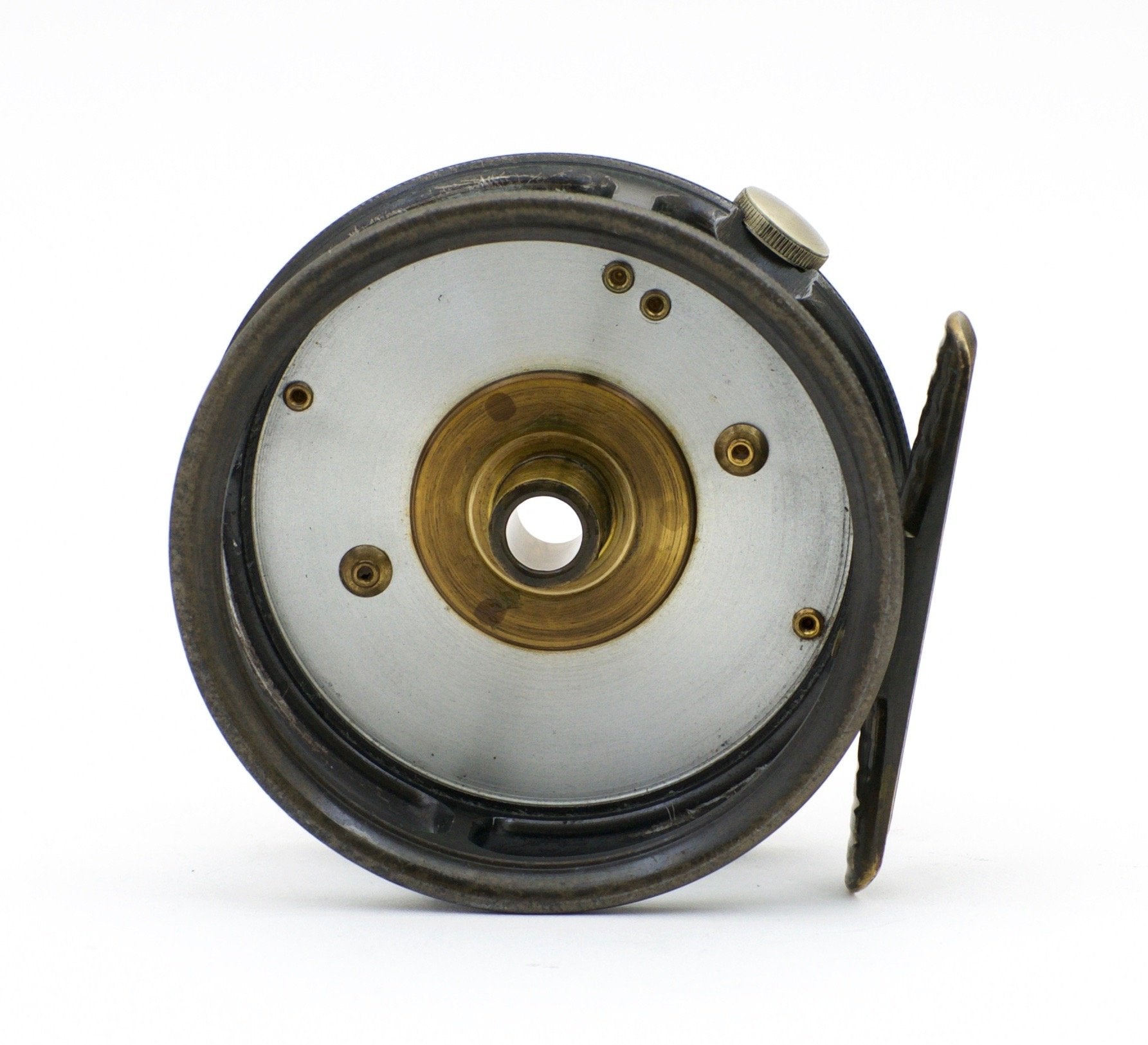 For sale here is a 2 7/8" Hardy Perfect with leaded finish and ribbed brass foot. Marked with circular writing and is stamped "The “Perfect” Fly Reel" in the center of the winding plate. Reel makers initials “TH” (Thomas Hall) stamped inside winding plate dates the production to 1928-30 as Thomas Hall made reels at Hardy only during that short period. 95%+ of the leaded finish intact as well as most of the original lacquer that coated the leaded finish. This reel is the entire package: scarce size, early manufacture, superb condition, and as smooth as the day it was made.