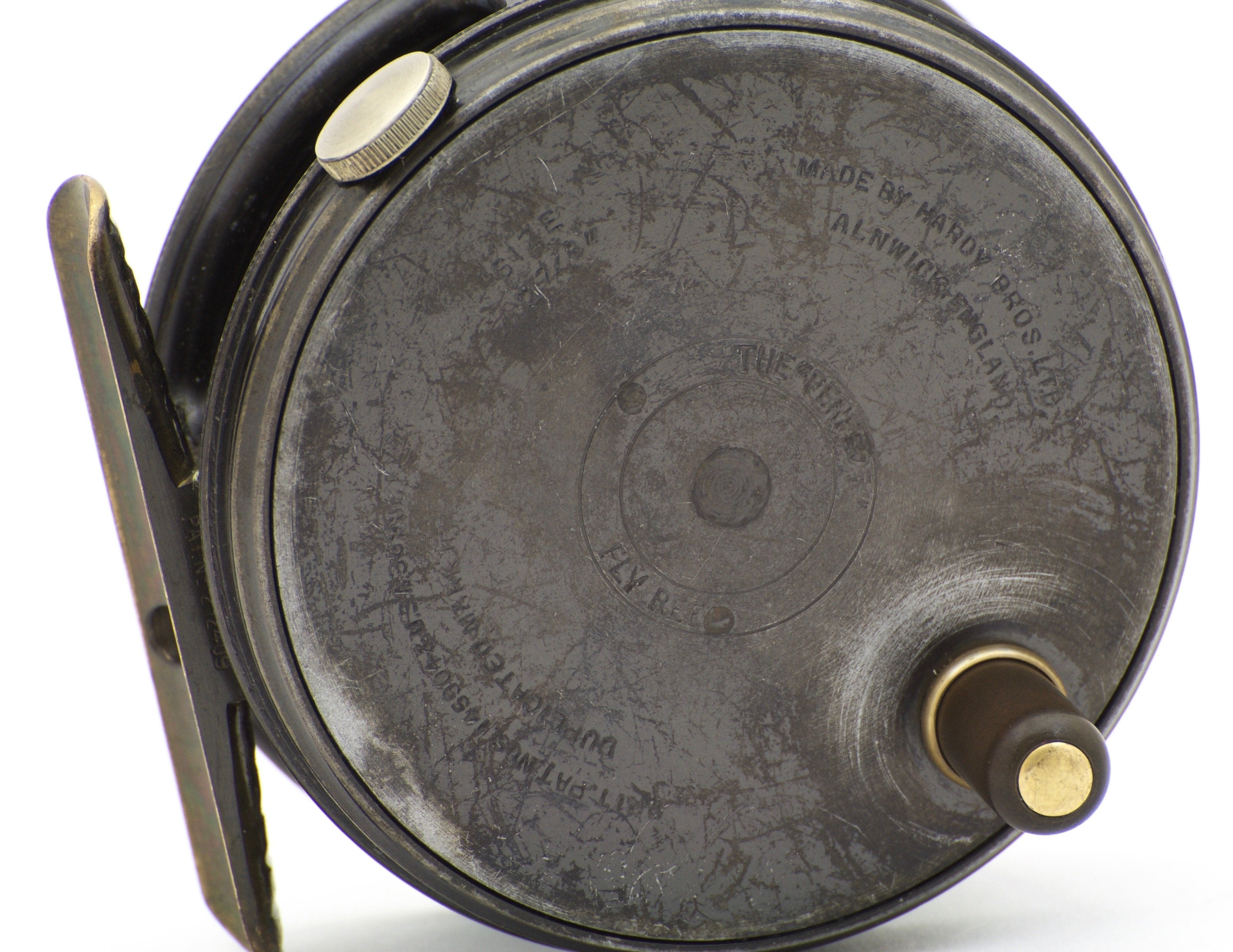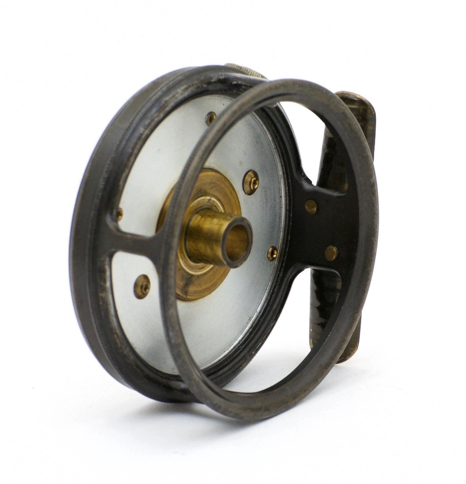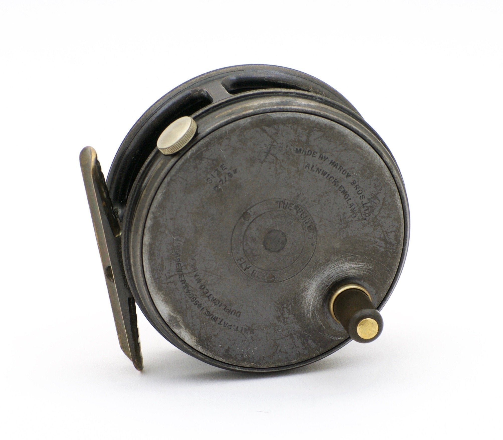 For sale here is a 2 7/8" Hardy Perfect with leaded finish and ribbed brass foot. Marked with circular writing and is stamped "The “Perfect” Fly Reel" in the center of the winding plate. Reel makers initials “TH” (Thomas Hall) stamped inside winding plate dates the production to 1928-30 as Thomas Hall made reels at Hardy only during that short period. 95%+ of the leaded finish intact as well as most of the original lacquer that coated the leaded finish. This reel is the entire package: scarce size, early manufacture, superb condition, and as smooth as the day it was made.