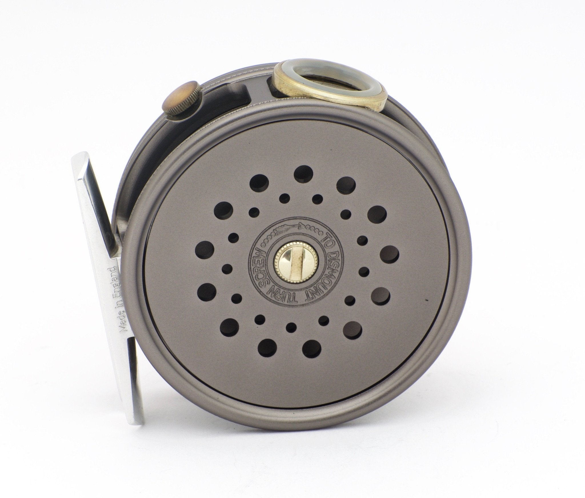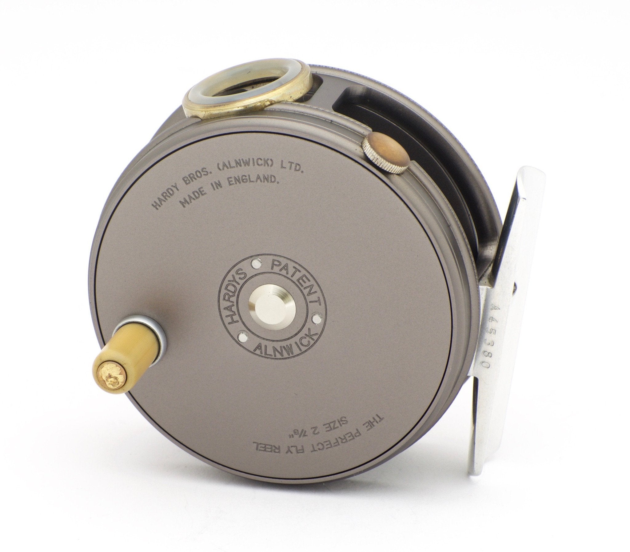 For sale here is a Hardy Perfect 2 7/8" fly reel with unblemished agate line guide. Near mint condition. Comes with box, leather reel case, and paperwork. Left hand retrieve.