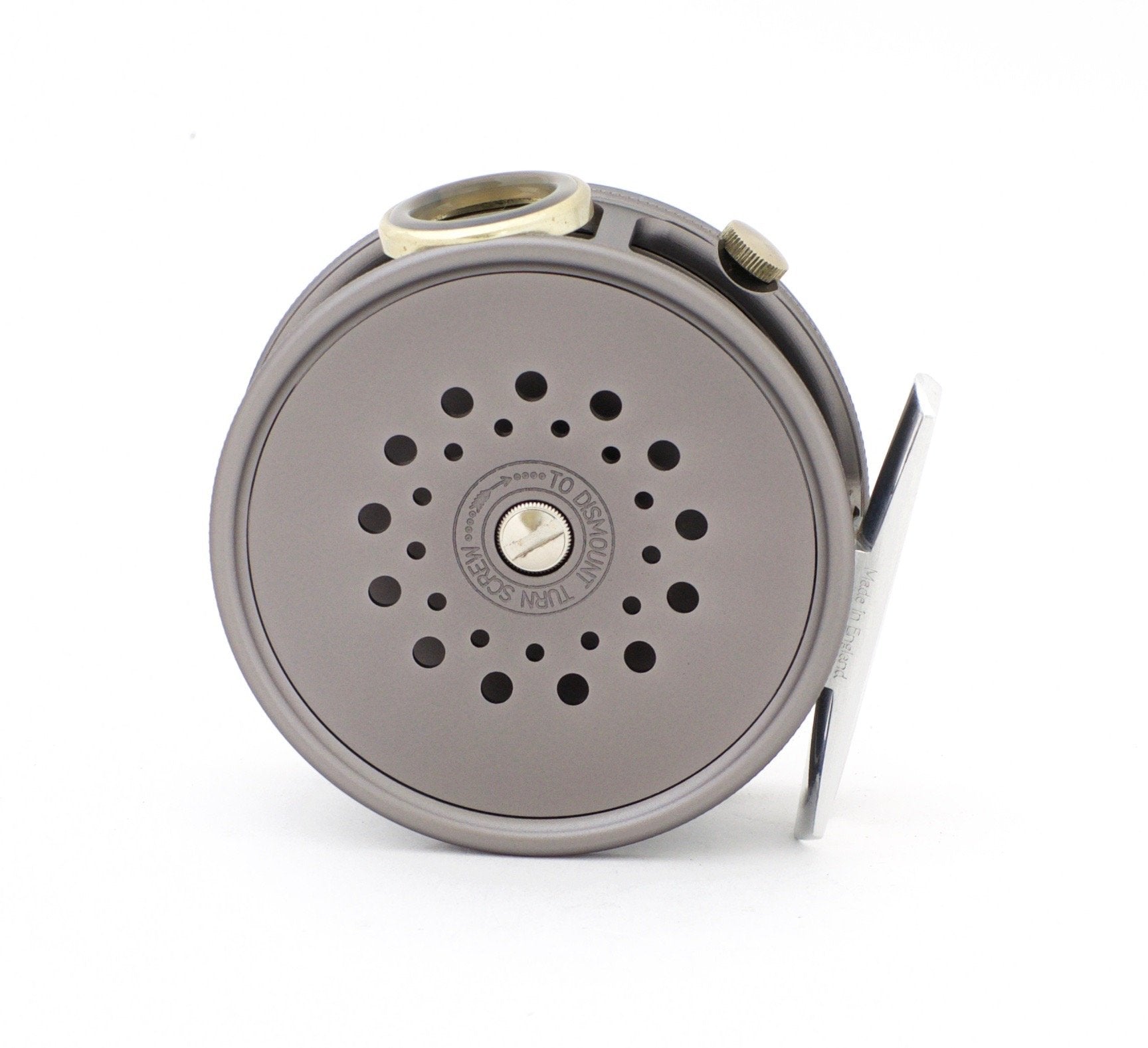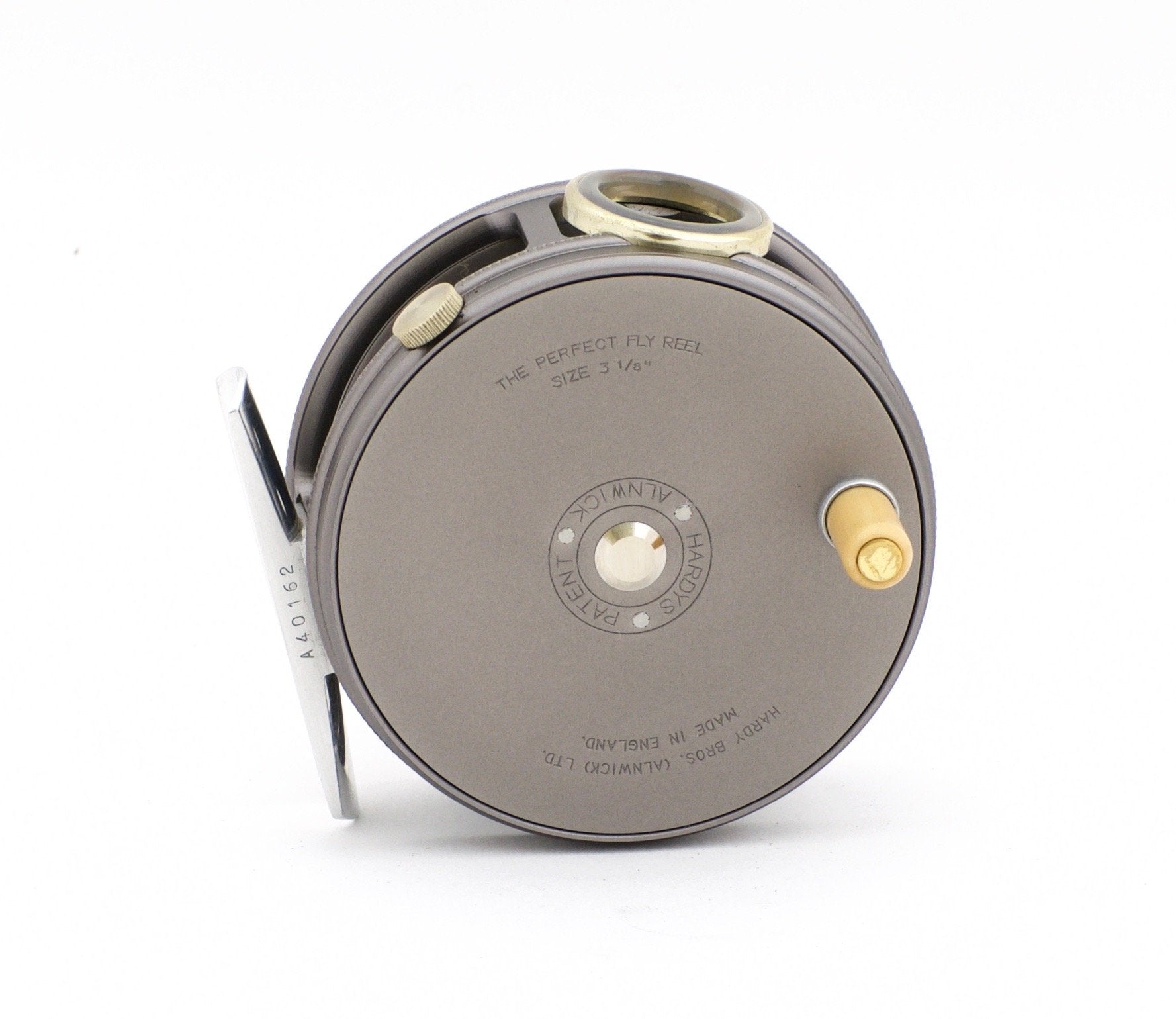 For sale here is a Hardy Perfect 3 1/8" fly reel (2009 reissue model) with flawless agate line guide. Grey anodized finish. Right hand retrieve. Mint condition with the minor exception of very slight handling marks on the reel foot. Comes with box, zippered reel case, and paperwork.