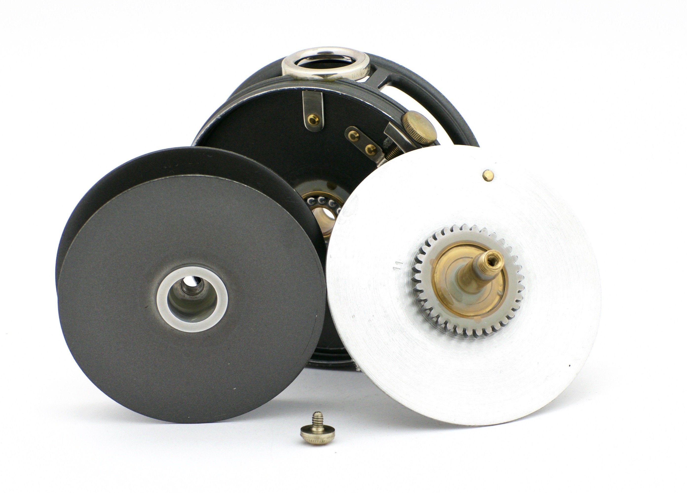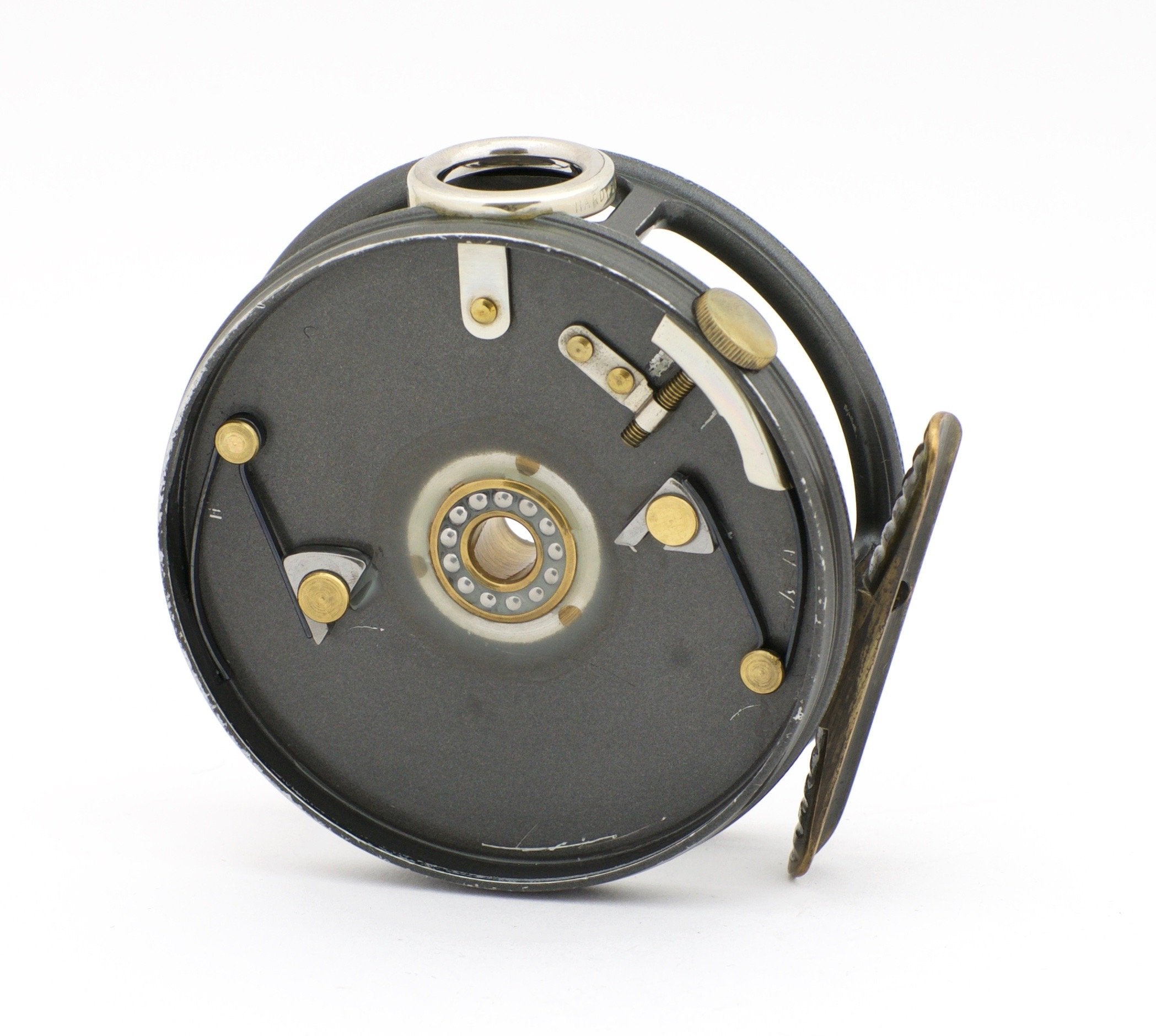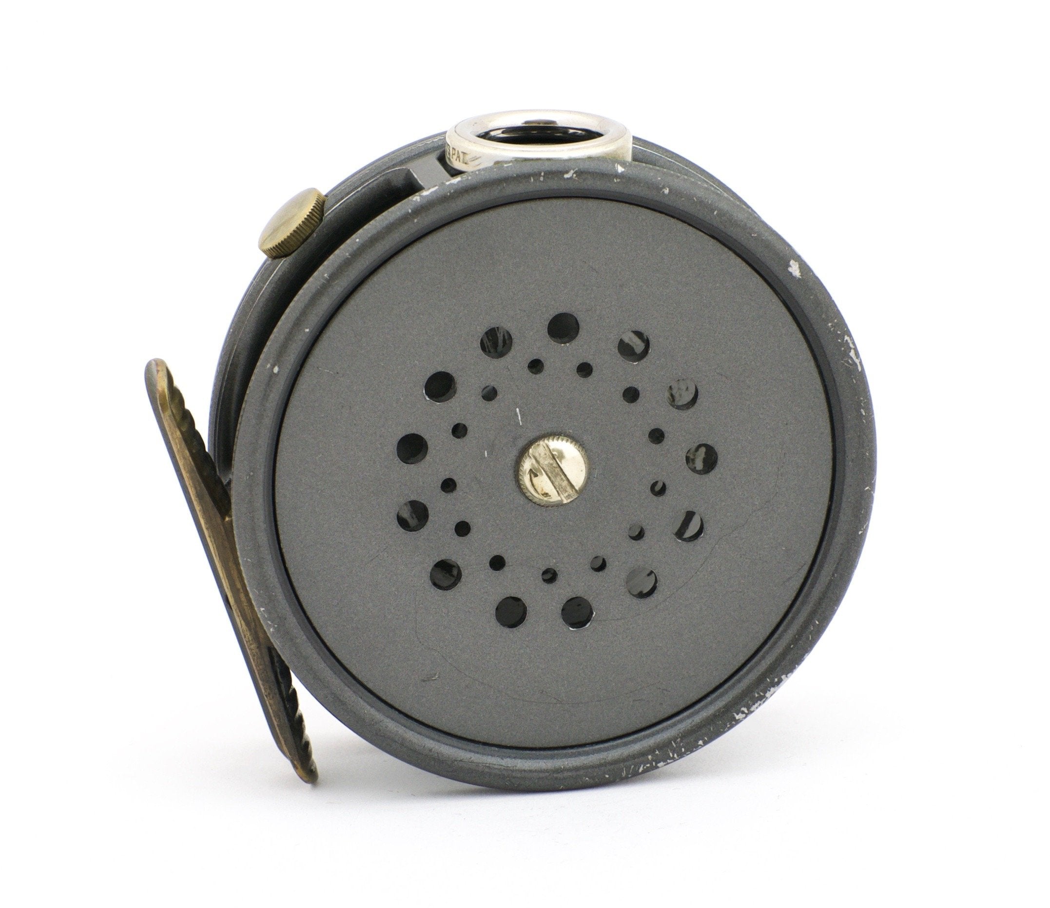 For sale here is a supremely scarce Hardy Perfect 3 3/8" fly reel in left hand retrieve. Made in the 50s. Excellent condition. Nickel silver/monel line guide. Ribbed brass foot.