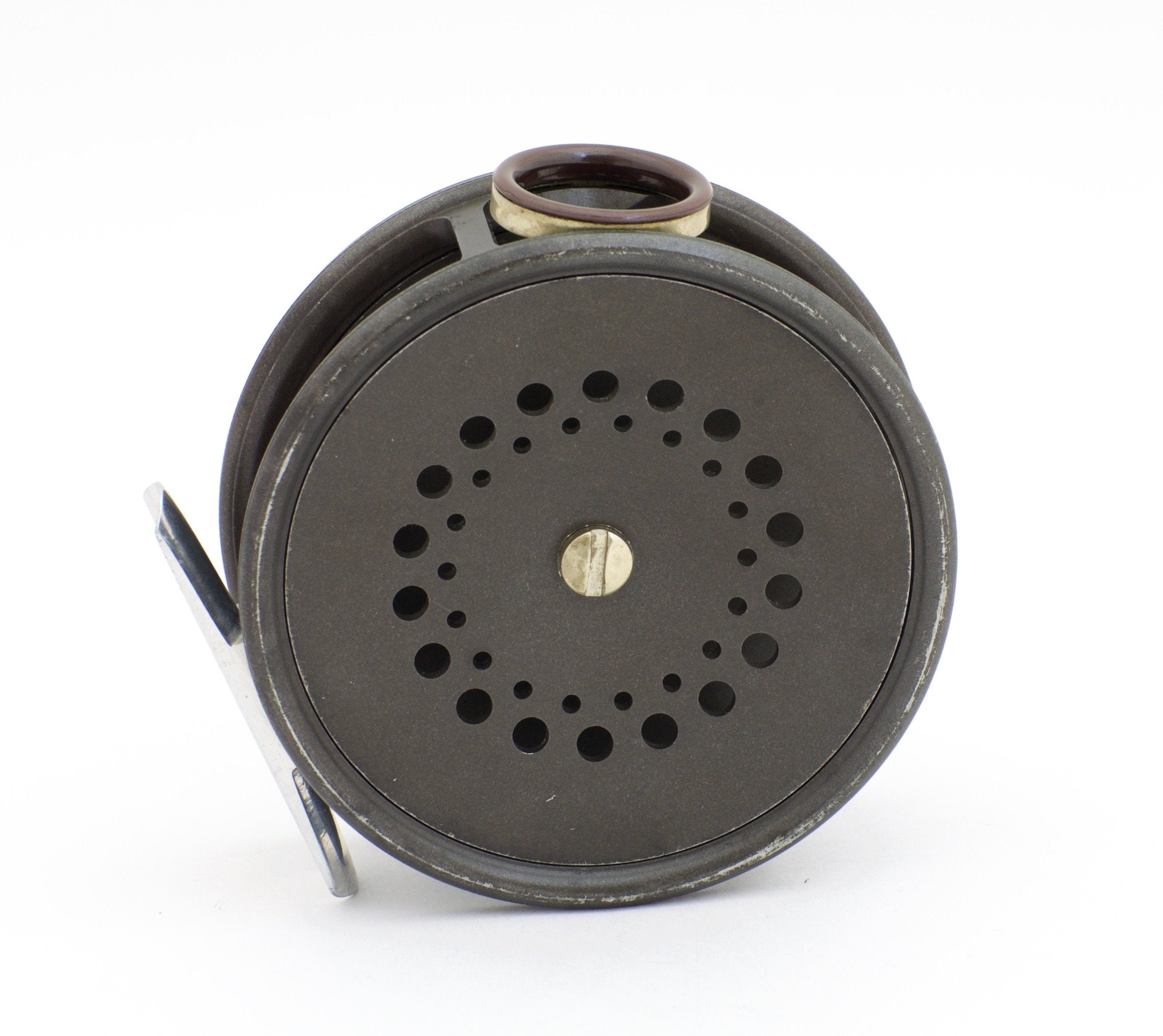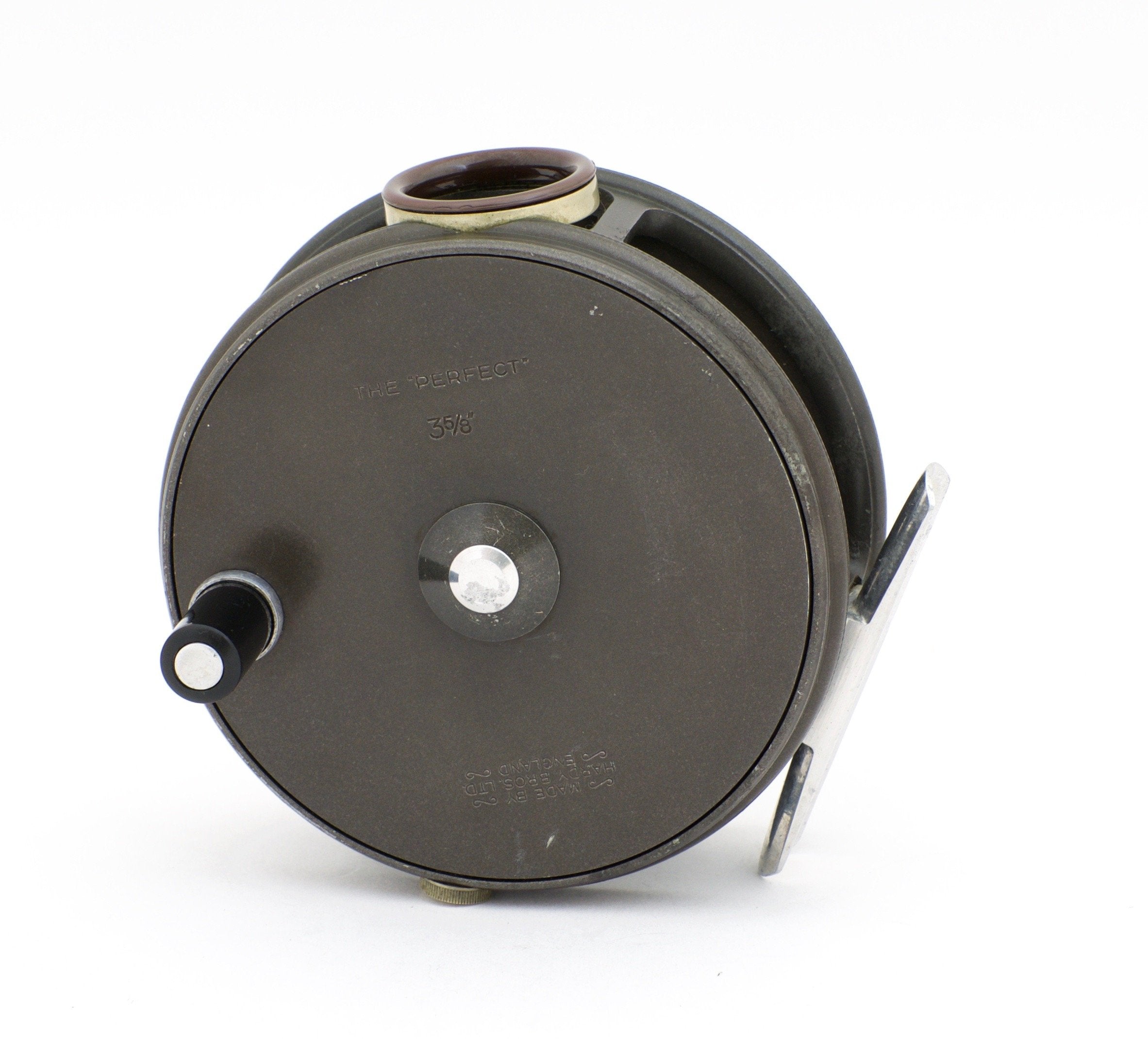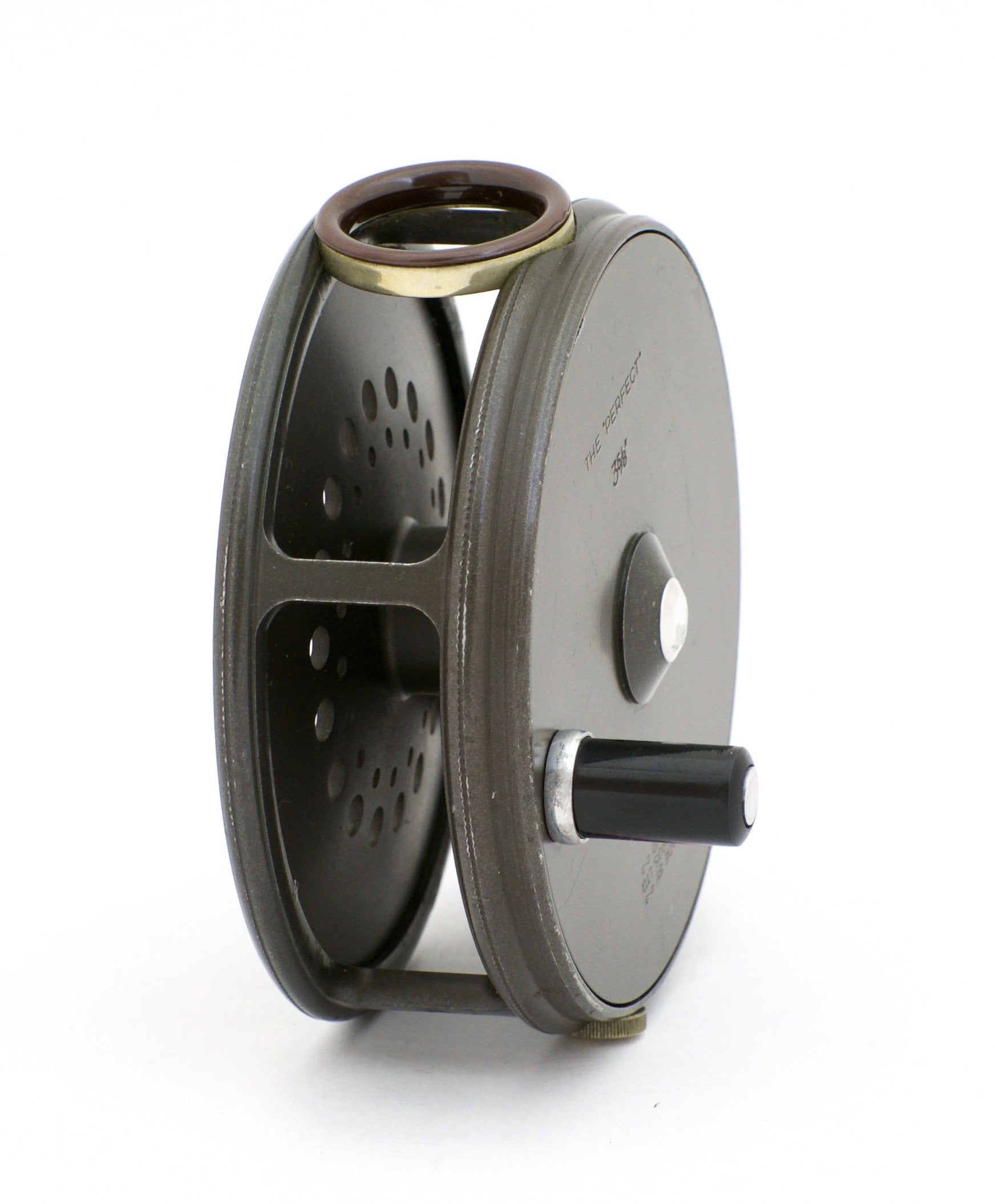 For sale here is a scarce left hand retrieve Hardy Perfect fly reel. 3 5/8" diameter with unblemished ceramic line guide. Excellent+ overall condition. The reel comes with its original reel case and the original box missing some of its flaps. See last photo for line capacity.