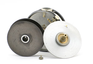 For sale here is a pre-war Hardy Perfect in left hand retrieve. 3 5/8" diameter. Flawless agate line guide. Unmolested ribbed brass reel foot. No issues to speak of other than the exterior leaded finish that now appears bright.