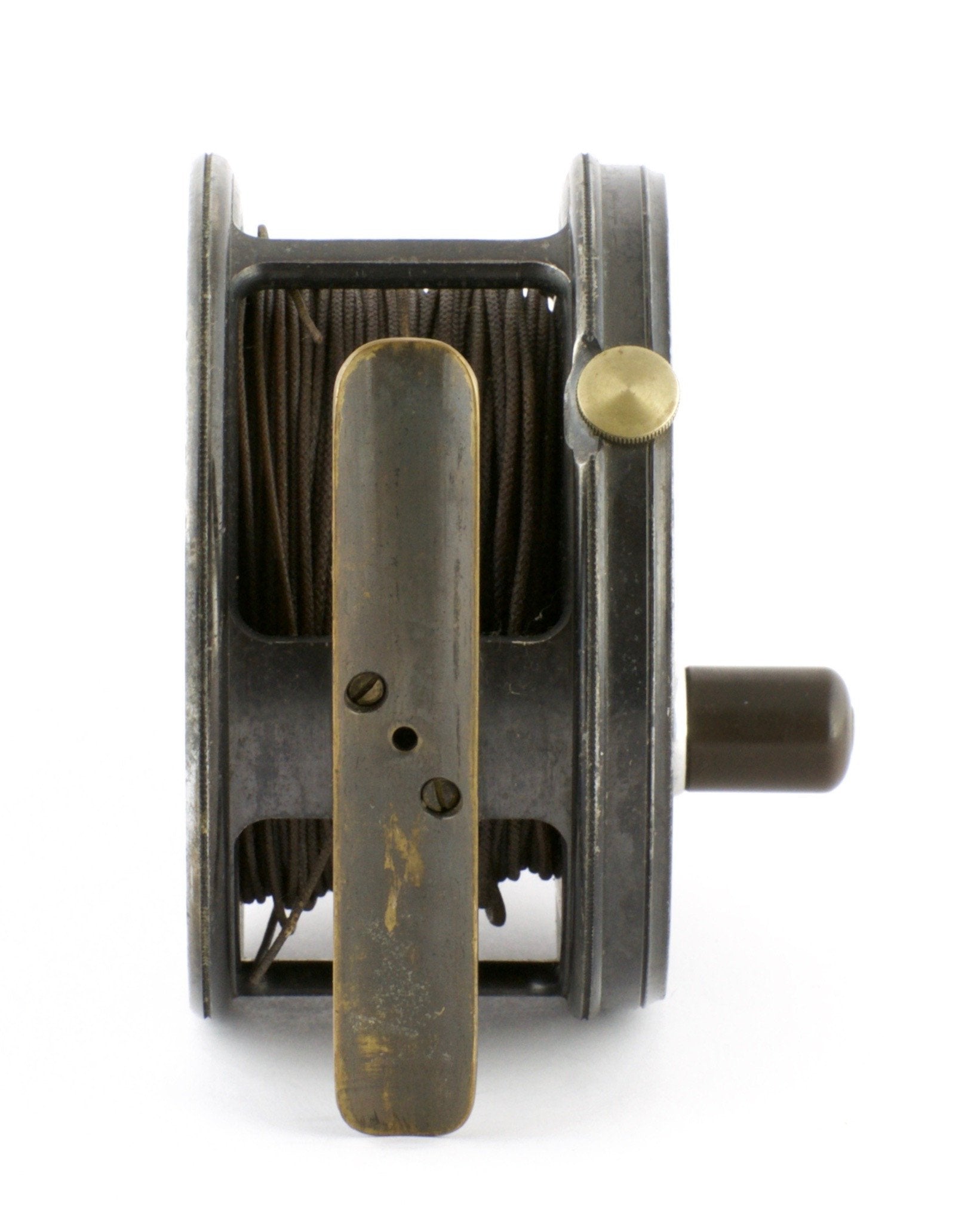 For sale here is a fine Hardy 4 1/4" Wide Drum Perfect with the Hardy's Duplicated MKII check mechanism. There are no apparent repairs or unoriginal parts. Full length unmolested smooth brass foot. No cracks, chips, or dings. The tensioner works perfectly throughout its range. Very strong check. Fat ebonite handle is perfect. The reel retains the majority of its original finish and has no noticeable wobble or end play.