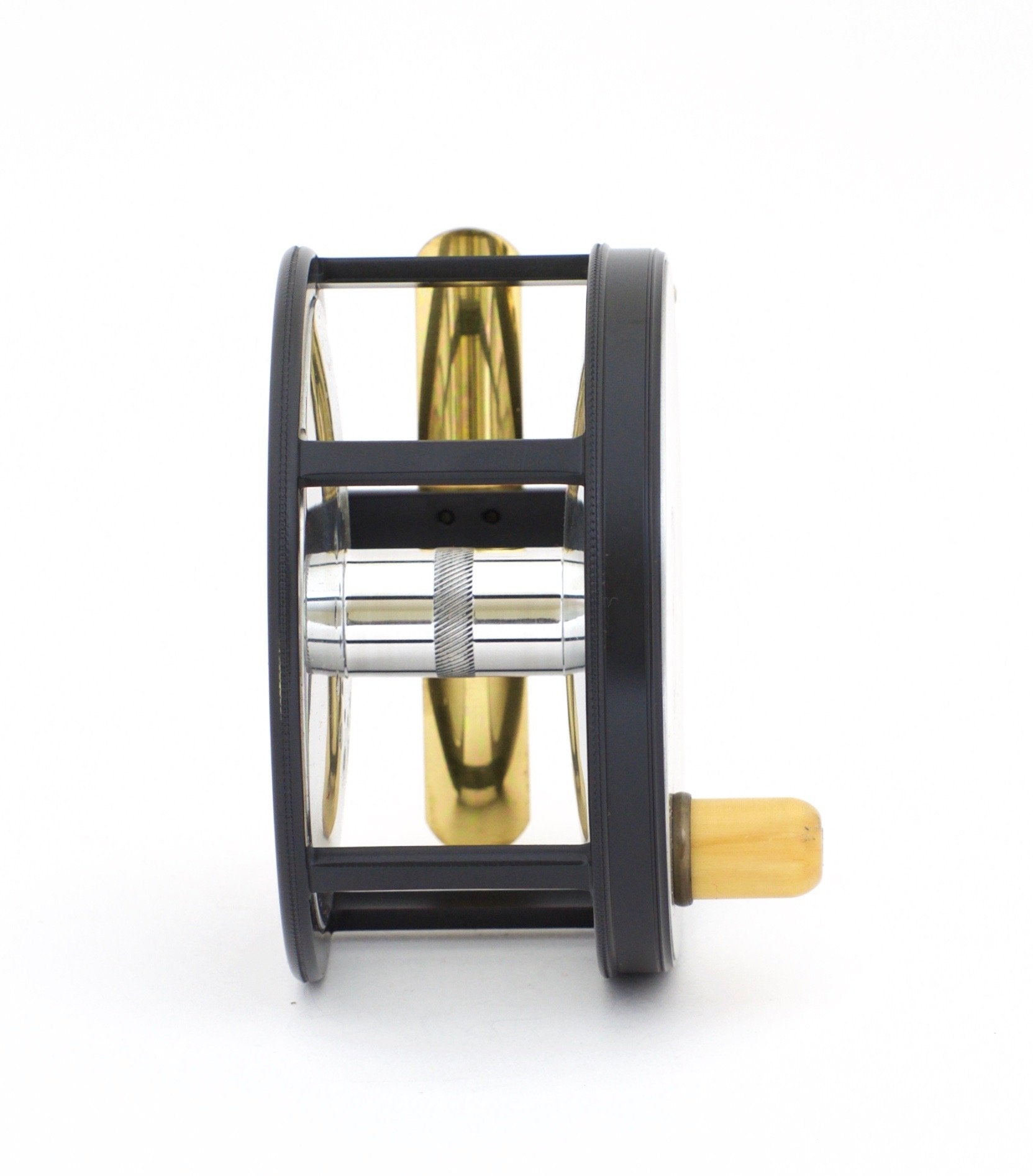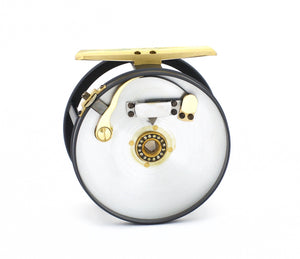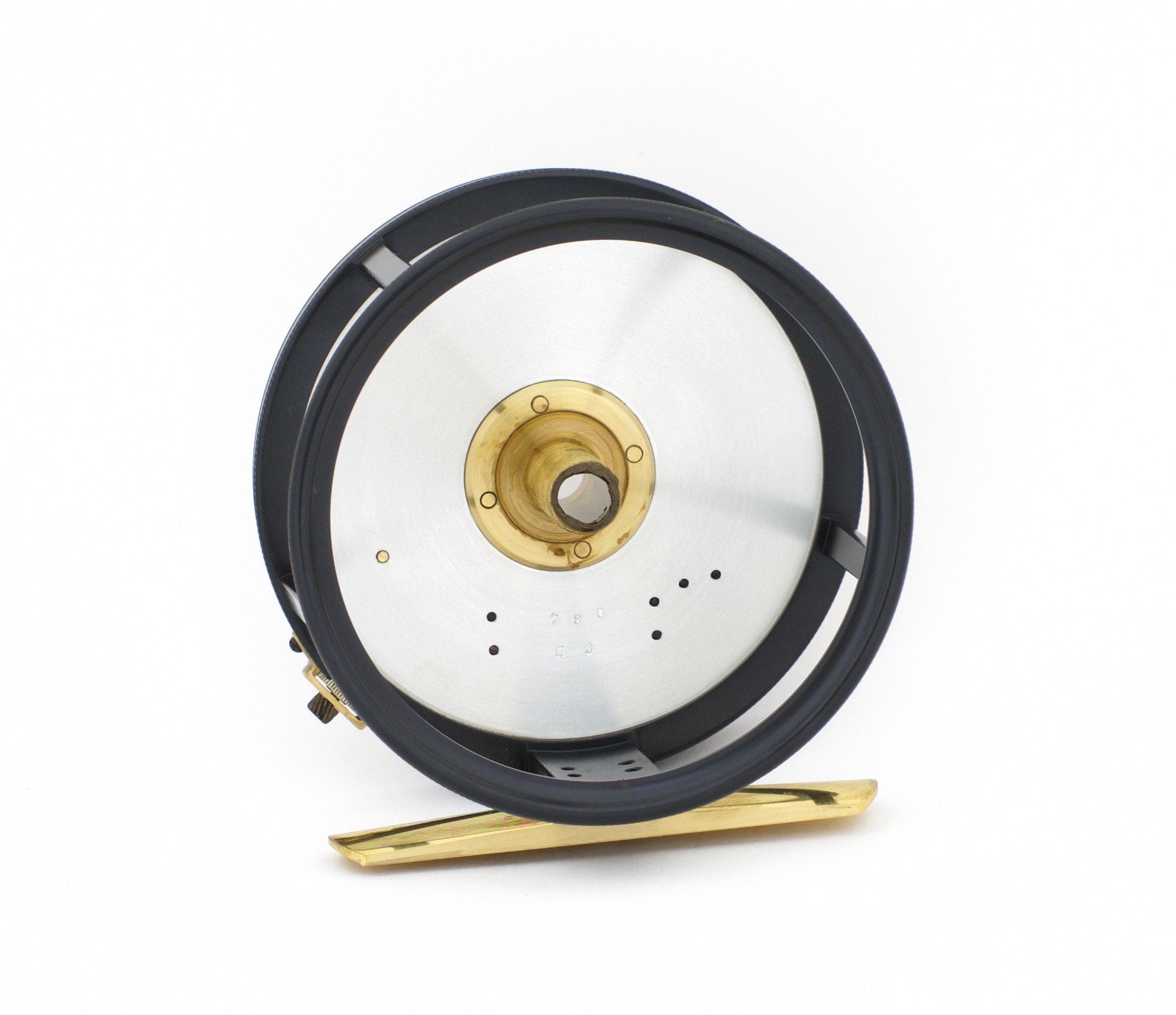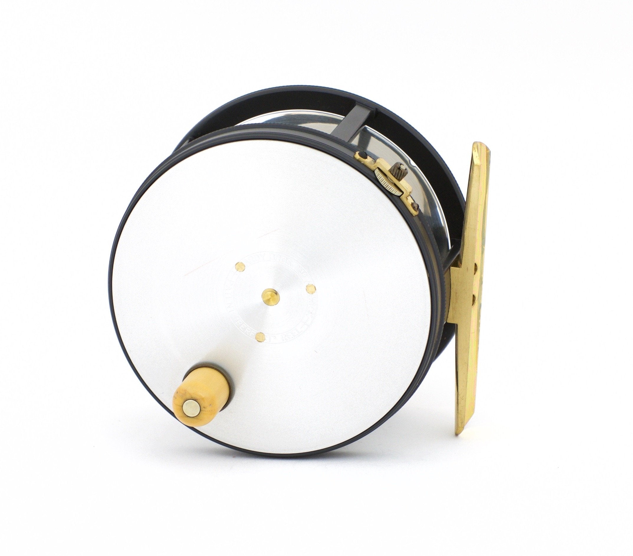 For sale here is a Hardy Perfect 1912 Reproduction Limited Edition Fly Reel, the 4 1/4" diameter reel that came in a set with the other two sizes, 3 3/4" and 4" (these two are not included with this sale). The 4 1/4" reel has a spool width of 1 1/2". Left hand retrieve. There were only 200 of each reel made. The reel features an aluminum spitfire finish face plate, ivorine handle, turks head locking nut, smooth brass reel foot (No.3), and interchangeable spare reel foot (No.1) to fit modern rods.