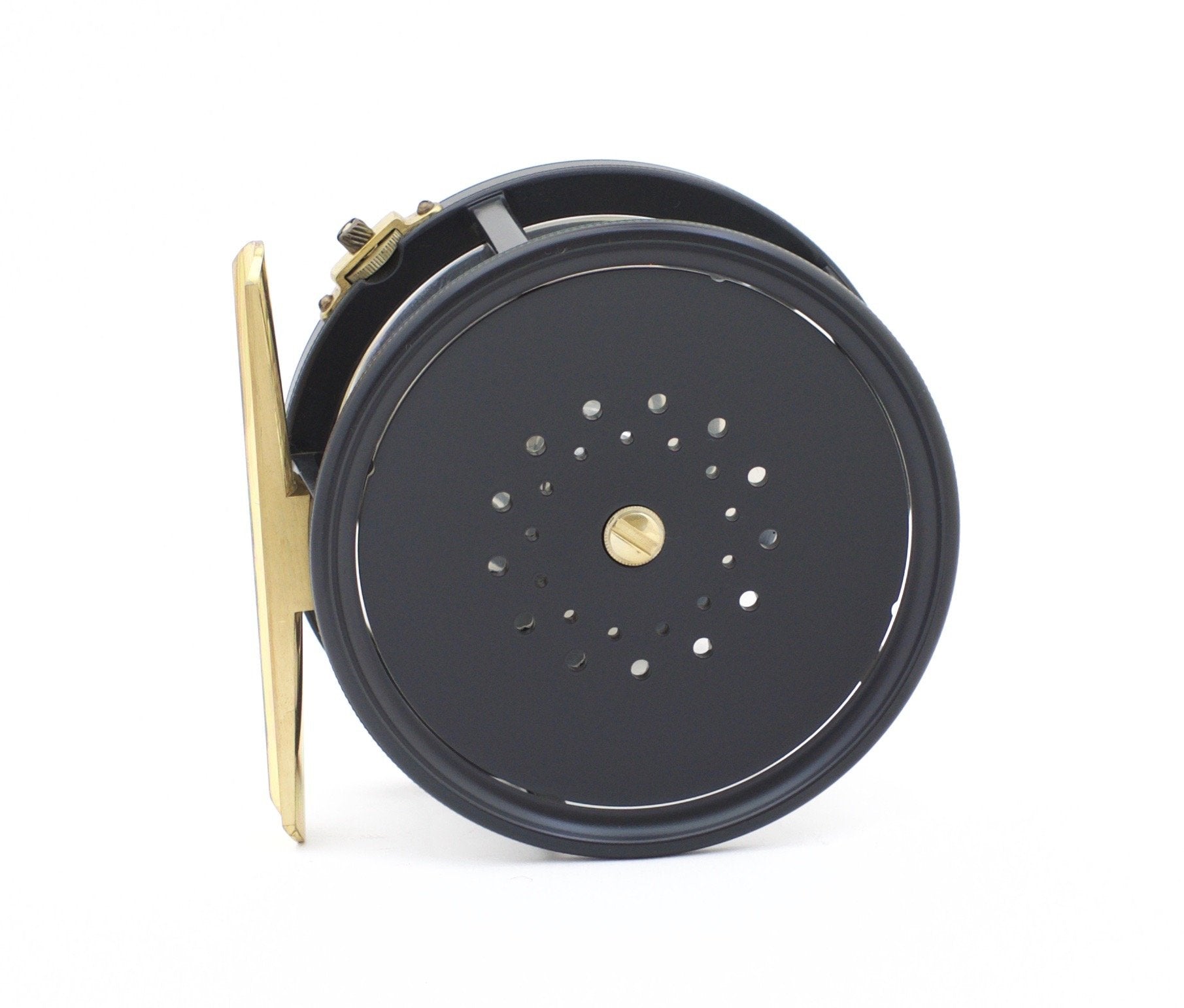 For sale here is a Hardy Perfect 1912 Reproduction Limited Edition Fly Reel, the 4" diameter reel that came in a set with the other two sizes (these two are not included with this sale). The 4" reel has a spool width of 1 1/2". Left hand retrieve. There were only 200 of each reel made. The reel features an aluminum spitfire finish face plate, ivorine handle, turks head locking nut, smooth brass reel foot (No.3), and interchangeable spare reel foot (No.1) to fit modern rods.
