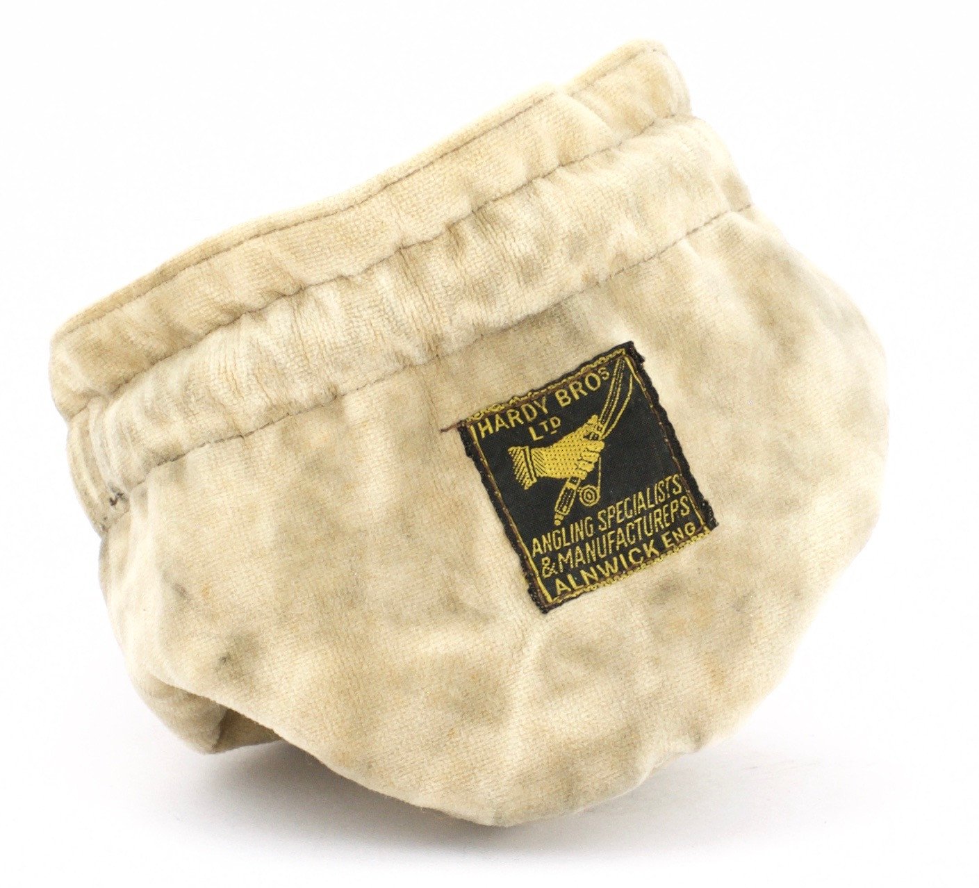 For sale here is a selvyt reel bag made by Hardy Brothers. Will fit a small trout reel or spare spool up to approximately 3". Excellent condition and all intact.