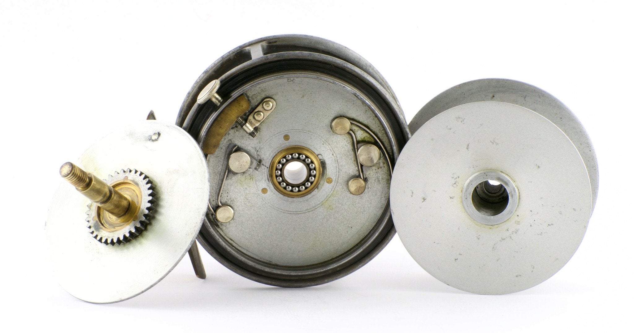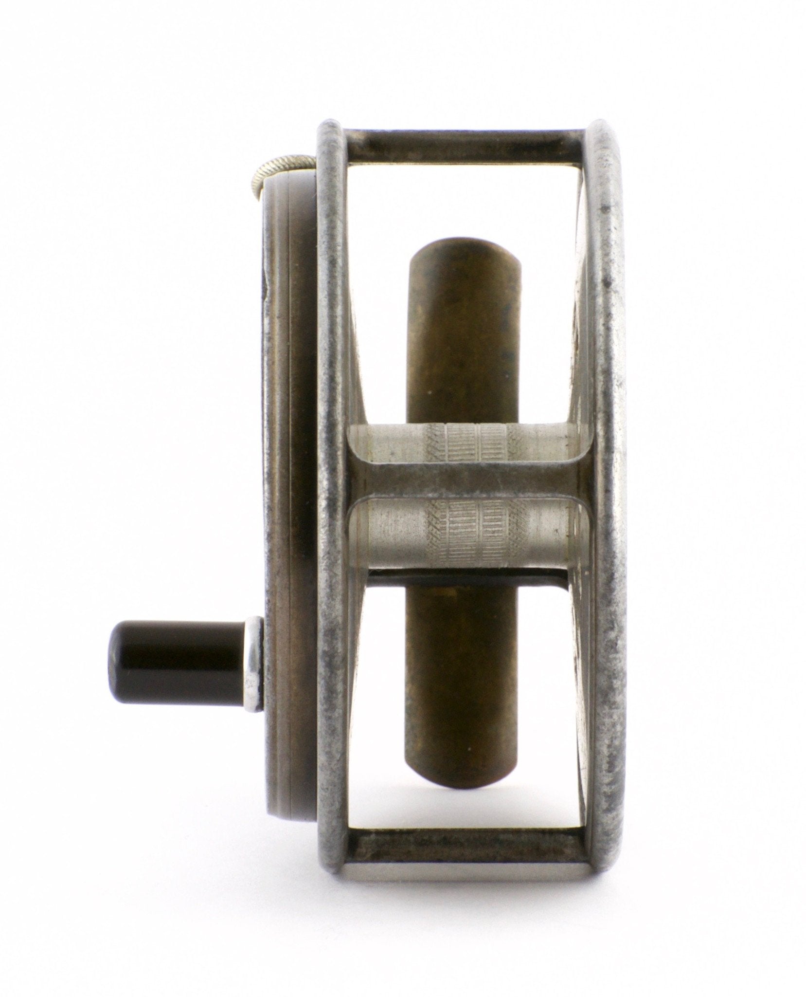 For sale here is a Hardy Special Perfect with duplicated MKII check and ebonite handle. Full length smooth brass reel foot that has never been altered. The diameter of all Special Perfects is 3 1/4". The handle is slightly bent and a small hairline crack exists on the backside of the winding plate. Priced accordingly. A nice user reel, very fishable, for a fraction of the price of a usual Hardy Special Perfect. There have been no repairs to this reel. If you are not satisfied upon purchase, you may return it for a full refund.