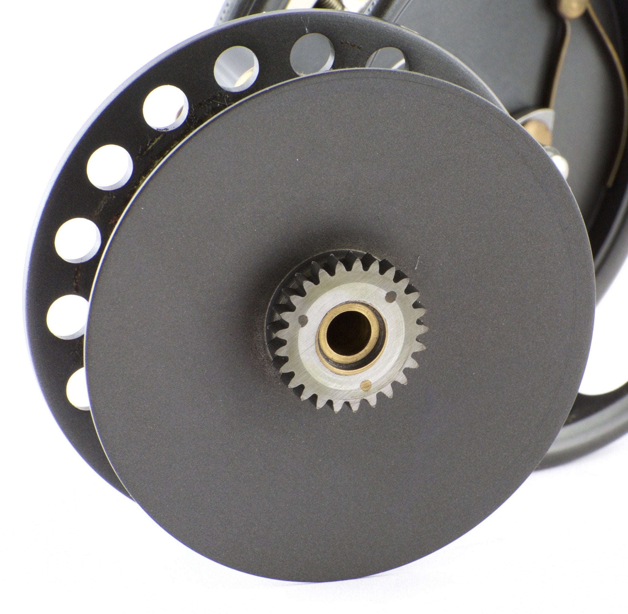For sale here is a Hardy St. George 3 3/8" fly reel with the Duplicated MKII check and nickel silver line guide with monel insert. Full length and unaltered ribbed brass foot with most of its original factory lacquer still present. Ebonite handle spins freely. Tensioner works perfectly. No line burns. No cracks/chips/dings. No problematic wobble or end play. NEAR MINT CONDITION!