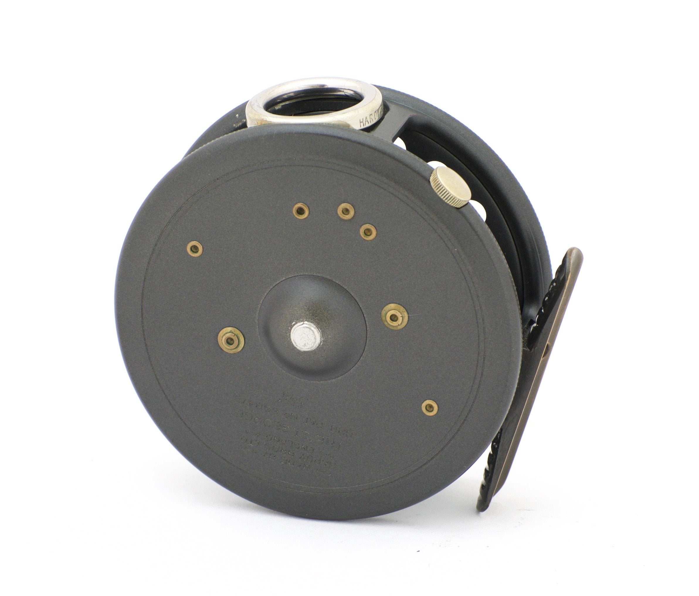 For sale here is a Hardy St. George 3 3/8" fly reel with two-screw latch. Nickel silver/monel line guide. Near mint condition. Unmolested ribbed brass foot and duplicated MKII check (both pawls engageable). The ebonite handle spins freely. The tension regulator works as intended. Nice strong check throughout its range.