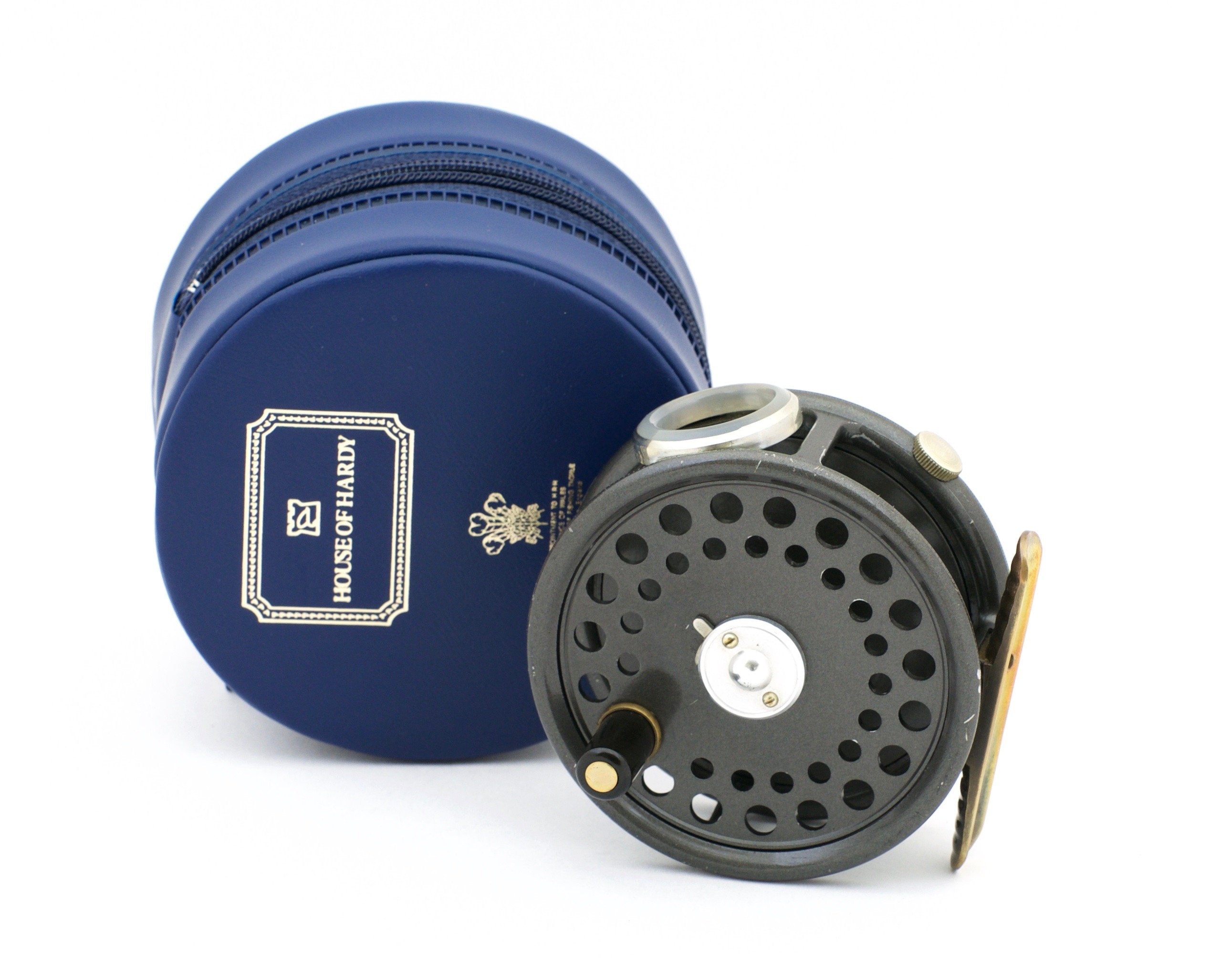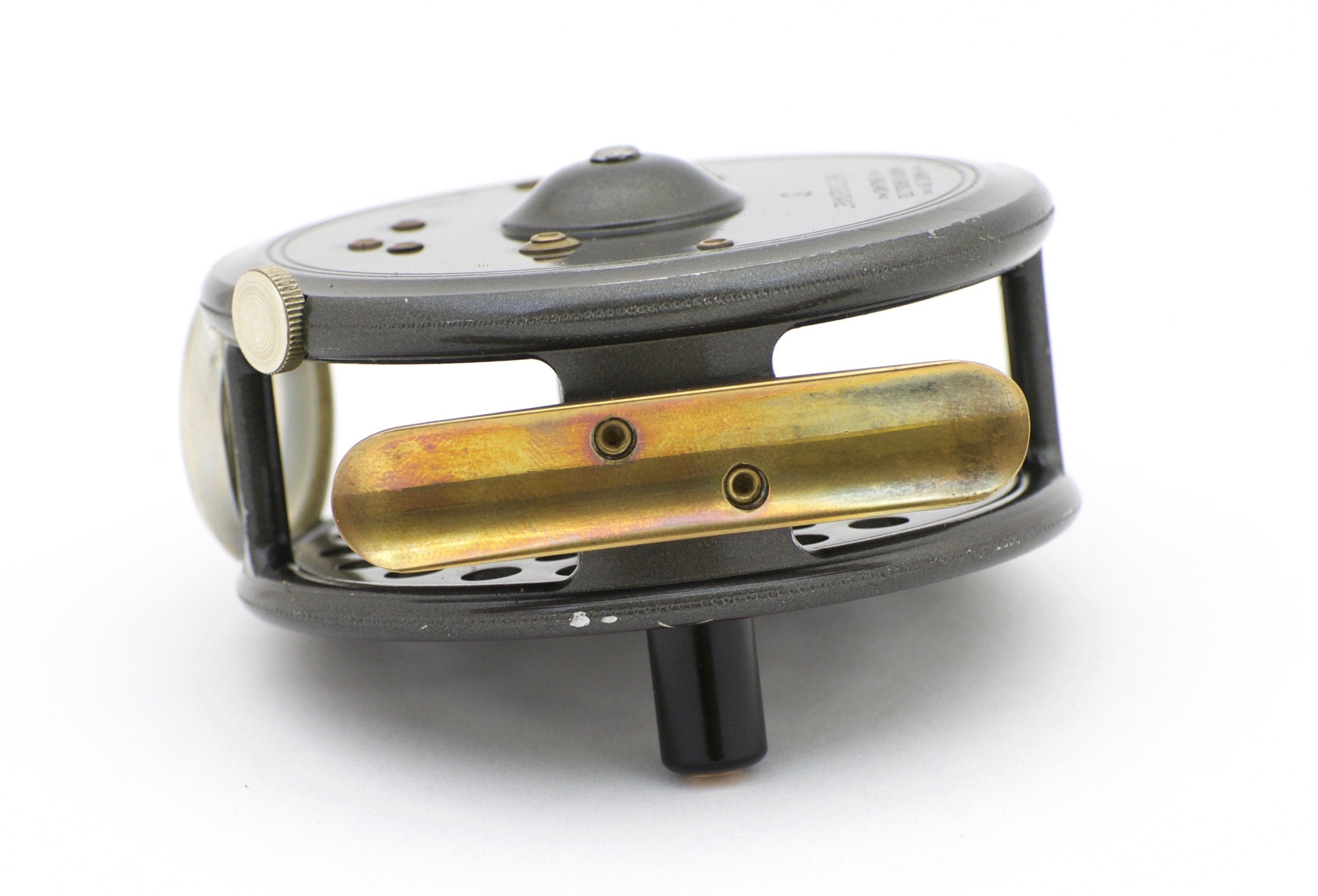 For sale here is a very scarce left-hand retrieve Hardy St. George 3" inch fly reel with two-screw latch. All original and in excellent condition throughout. Unmolested ribbed brass foot and duplicated MKII check. Perfect agate line guide. Comes with zippered Hardy reel case. Reasonable offers considered.