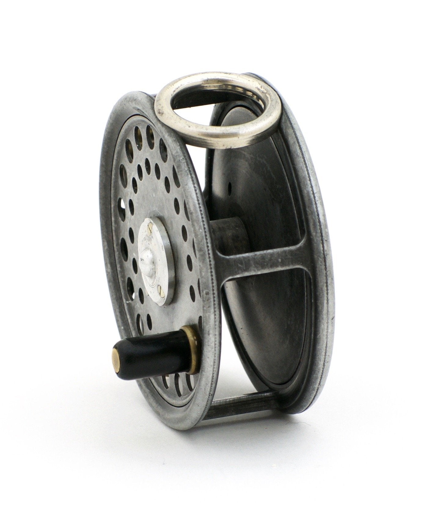 For sale here is a Hardy St. George 3 inch fly reel with three-screw latch. Excellent condition throughout. From the 1940's. Straight-line writing. Unaltered ribbed brass foot and MKII check. No cracks, chips, or dings. Nickel silver or monel line guide. The tension regulator works as intended. Nice strong check throughout its range. A true classic!