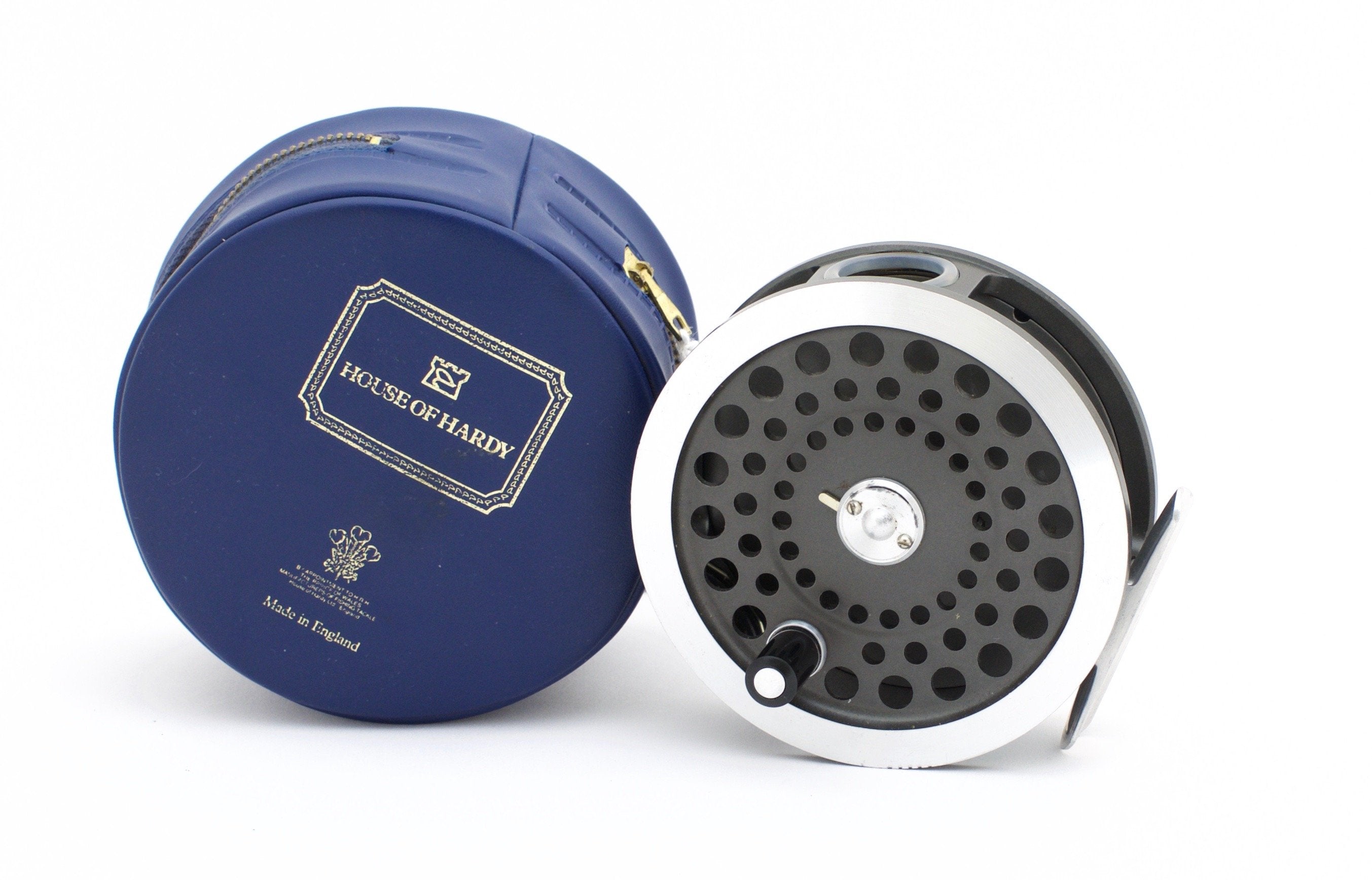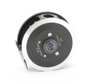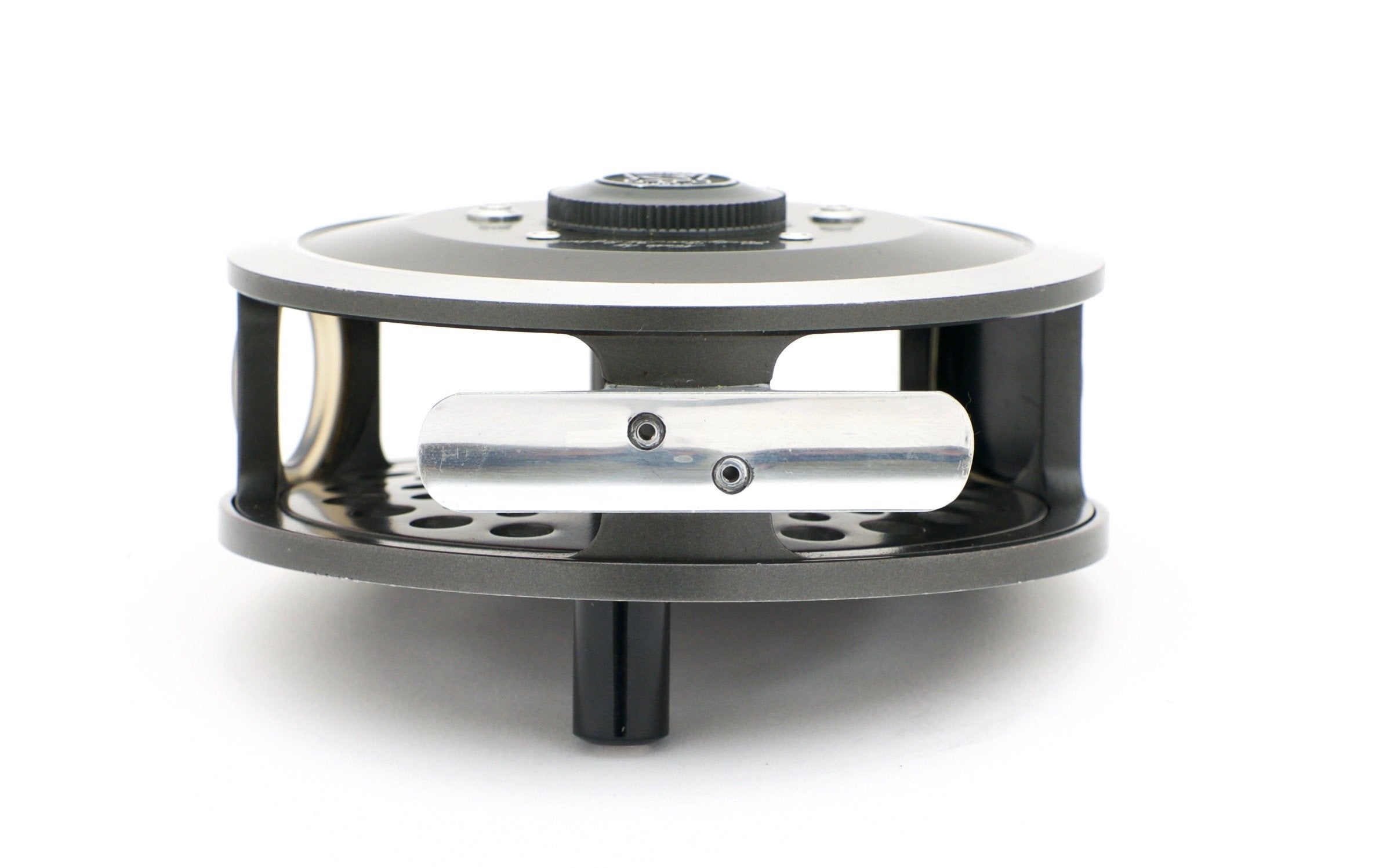 For sale here is a contemporary Hardy Sunbeam 9/10 fly reel. 4" diameter with a spool width of 1". 7 1/2 oz. Excellent condition. The thin agate line guide is free of cracks.