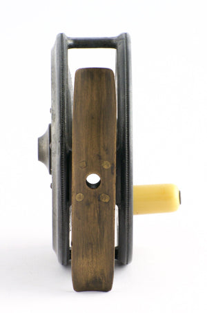 For sale here is a very scarce and early Hardy Uniqua model - 3 1/8" diameter with the early flat caliper spring check. Marked Hardy's Patent "Uniqua" Reel. Ivory handle. Mechanically the reel is still in good condition with a RHW fixed check and some end play like most Uniqua-style reels. The original smooth brass foot is unblemished. No cracks, chips, dings, or line grooves. A very nice and rare old Uniqua!