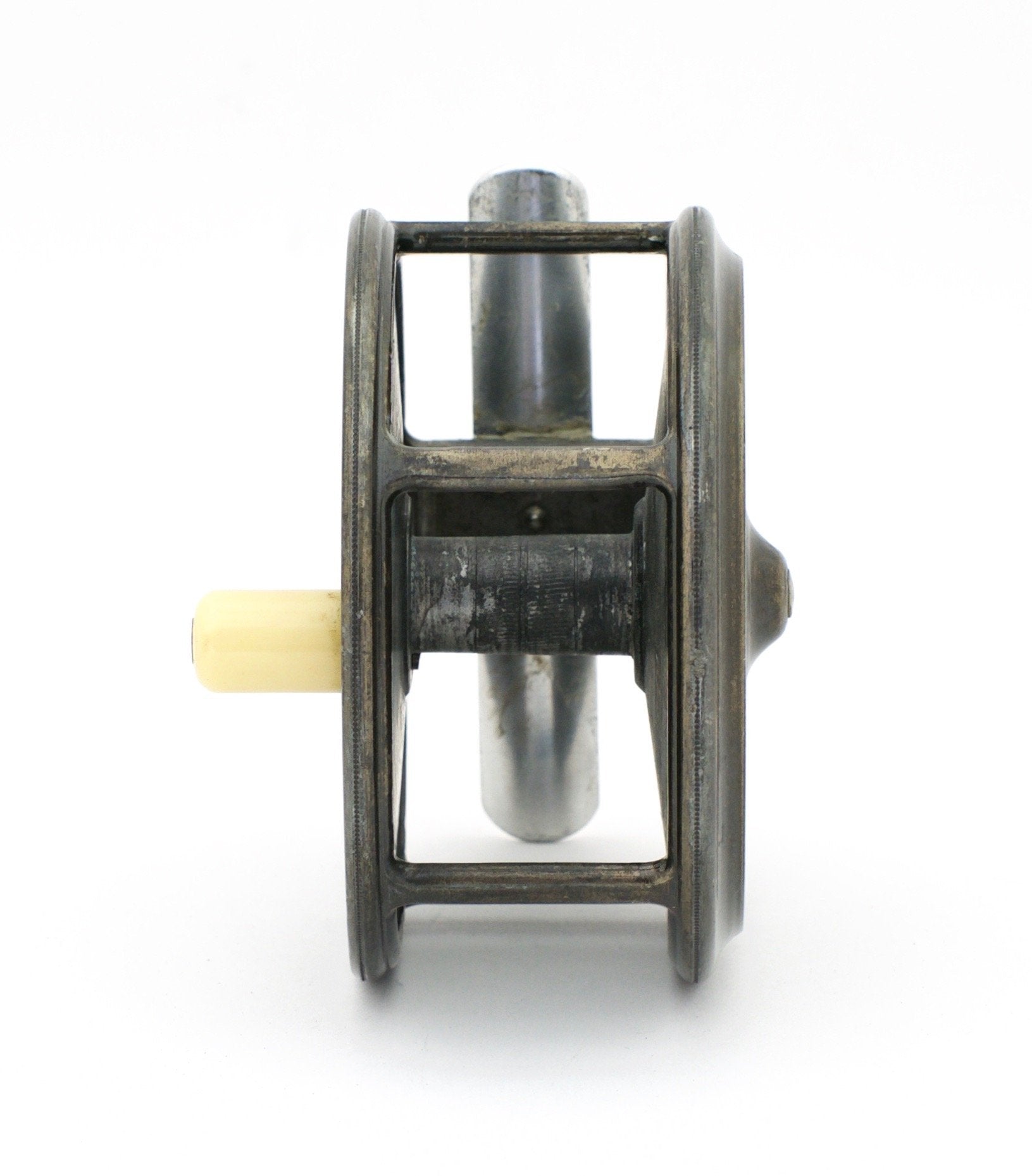 For sale here is an extremely scarce 4 1/4" Hardy Uniqua wide drum fly reel with, as Graham Turner states, "unusual central circular polished aluminium panel to faceplate". MKI check made from 1917-1921. Excellent overall condition. The ivory handle spins freely as it should. The tensioner on this reel works great. Gear teeth and pawls are in great shape with very sharp points. Original smooth alloy reel foot is straight and unaltered. No problematic wobble or end play. Horseshoe latch functions as it should. If you plan on fishing with it, you WILL be noticed on the stream. It produces a noticeably loud click! Comes with Hardy card box in fine condition as well.