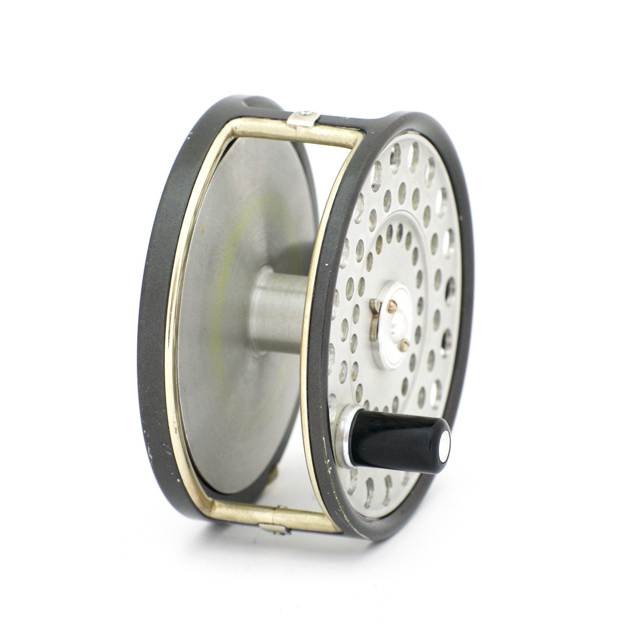 For sale here is a very scarce Hardy Zenith wide drum reel. First model with two pillars and rectangular nickel silver line guide. LHW or RHW, easily convertible. Excellent+ condition with very minor cosmetic use marks. The Zenith was part of Hardy's Lightweight Series of reels. This was one of two wide drum Lightweight models made in the early to late 1960s, the Husky being the other. Both are 3 3/8" diameter. Spool width 1 3/16". The reel weighs 6 3/4 oz. Capacity is WF9F plus 80 yards of 18# dacron backing. Original ribbed alloy foot is unmolested. Probably the best we've ever seen of this model!