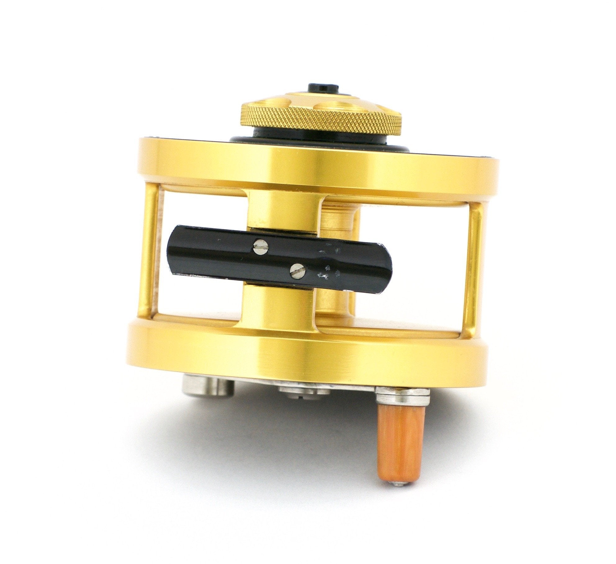 For sale here is a 4" salmon/steelhead fly reel made by Chris Henshaw. It appears to be a prototype or a very limited production model. Gold anodized. Left hand retrieve. Carbon fiber adjustable drag with clicker. Excellent+ condition. The reel weighs 15 1/8 oz. and the spool width is 1.3".
