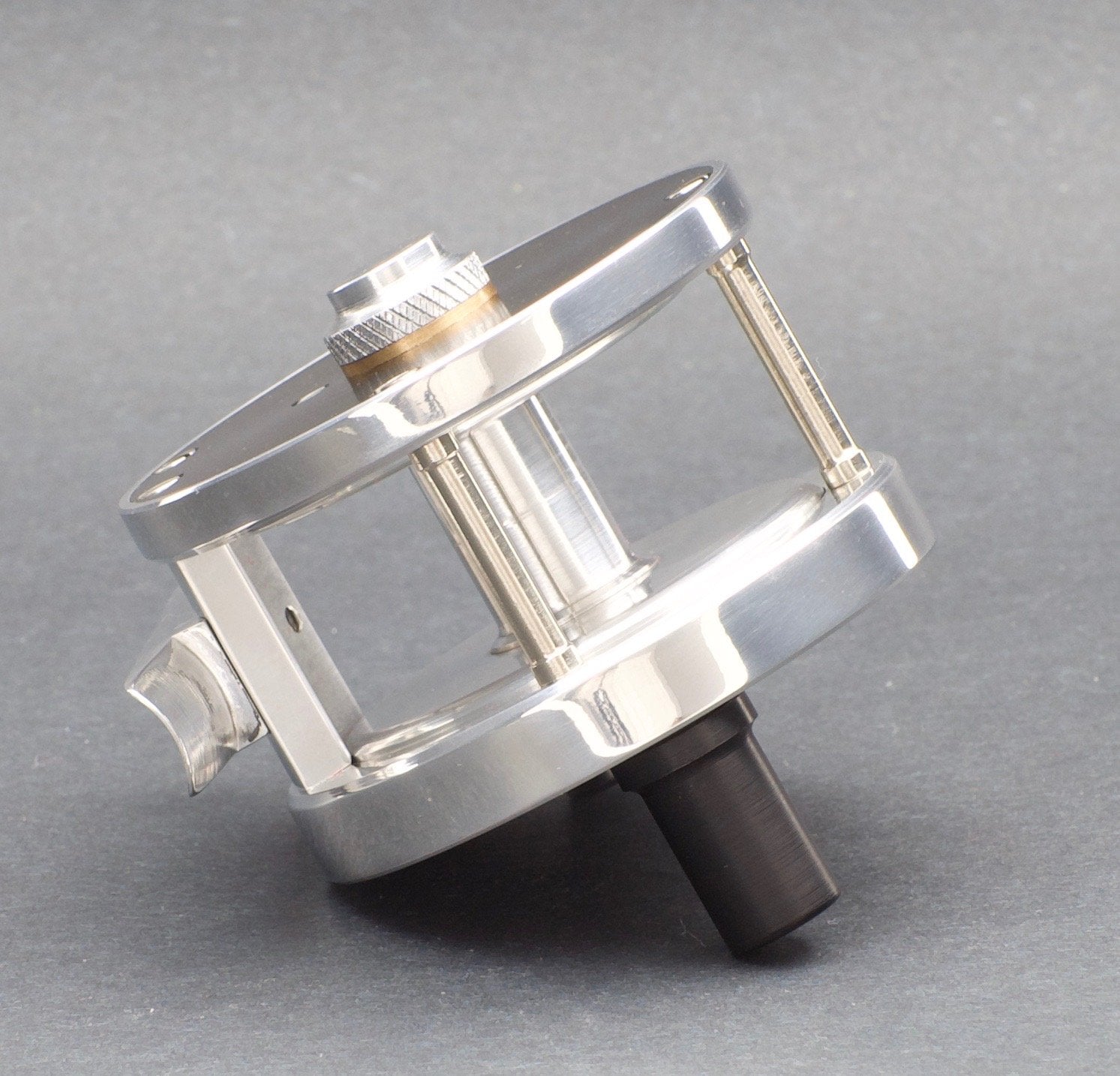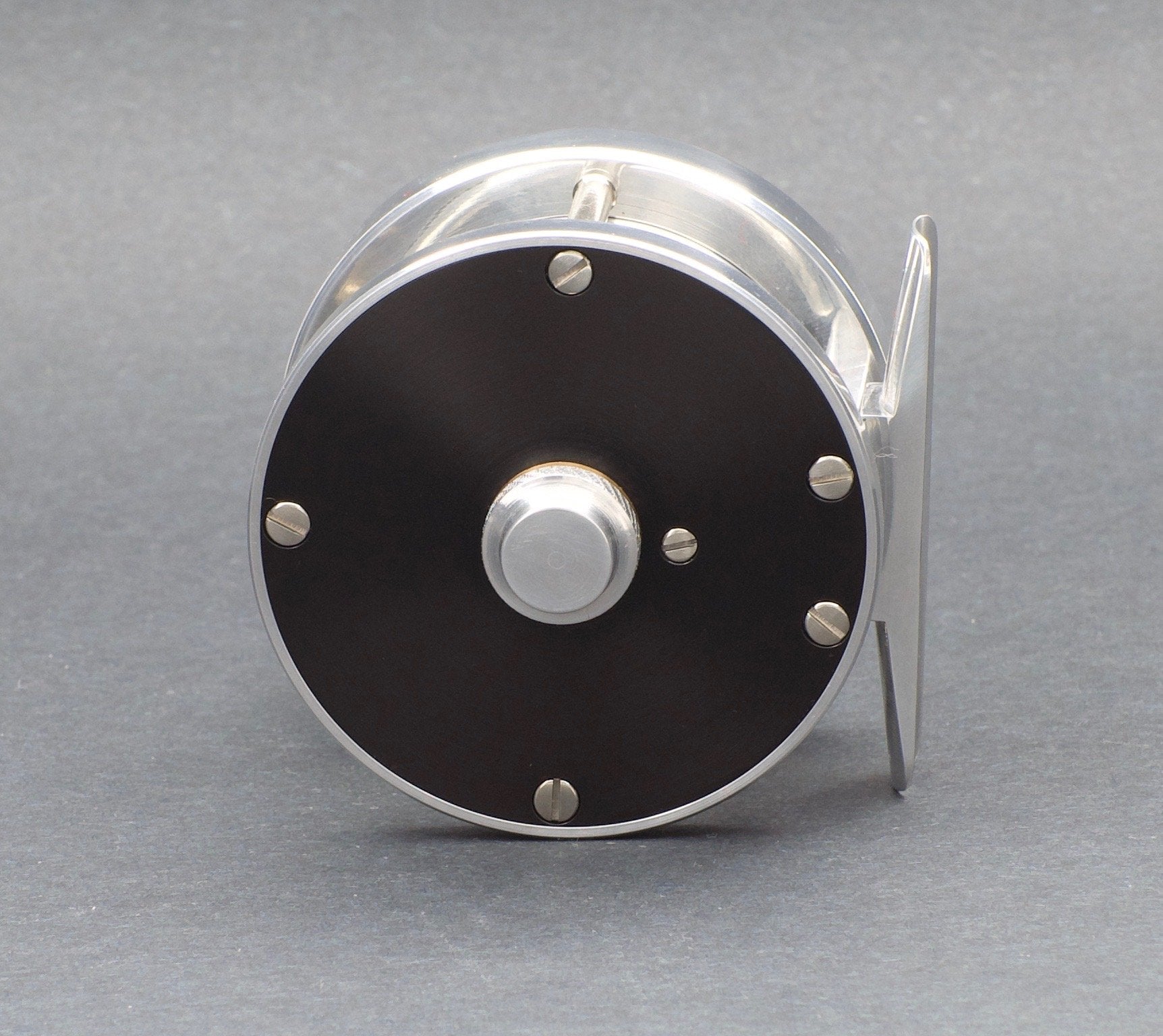 For sale here is a Paul Hermann Baby Trout Model fly reel in mint unfished condition. Serial no. 092. The reel's winding direction is neutral so you can fish it RHW or LHW. As always, this reel is simply an amazing piece of work by the late Dr. Hermann. If you ever have a chance to own one of these reels, you are lucky. Comes in the usual red fleece bag.