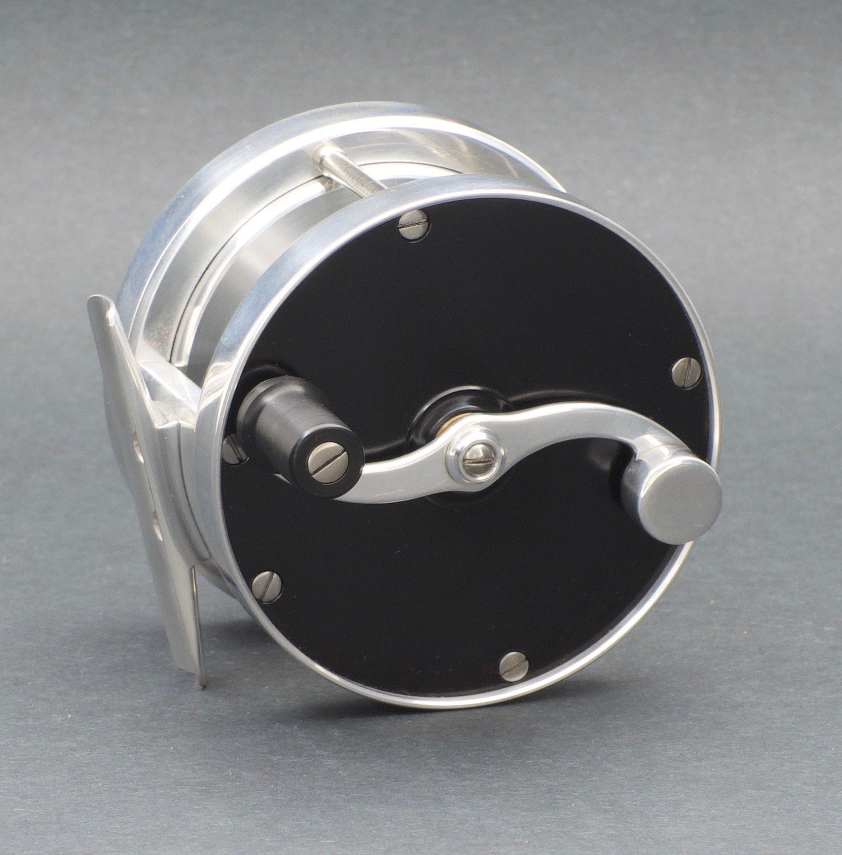 For sale here is a Dr. Paul Hermann Dry Fly Salmon reel. Serial no. 103. Left-hand retrieve. The reel is in mint unused condition. Comes in a fine fleece bag.