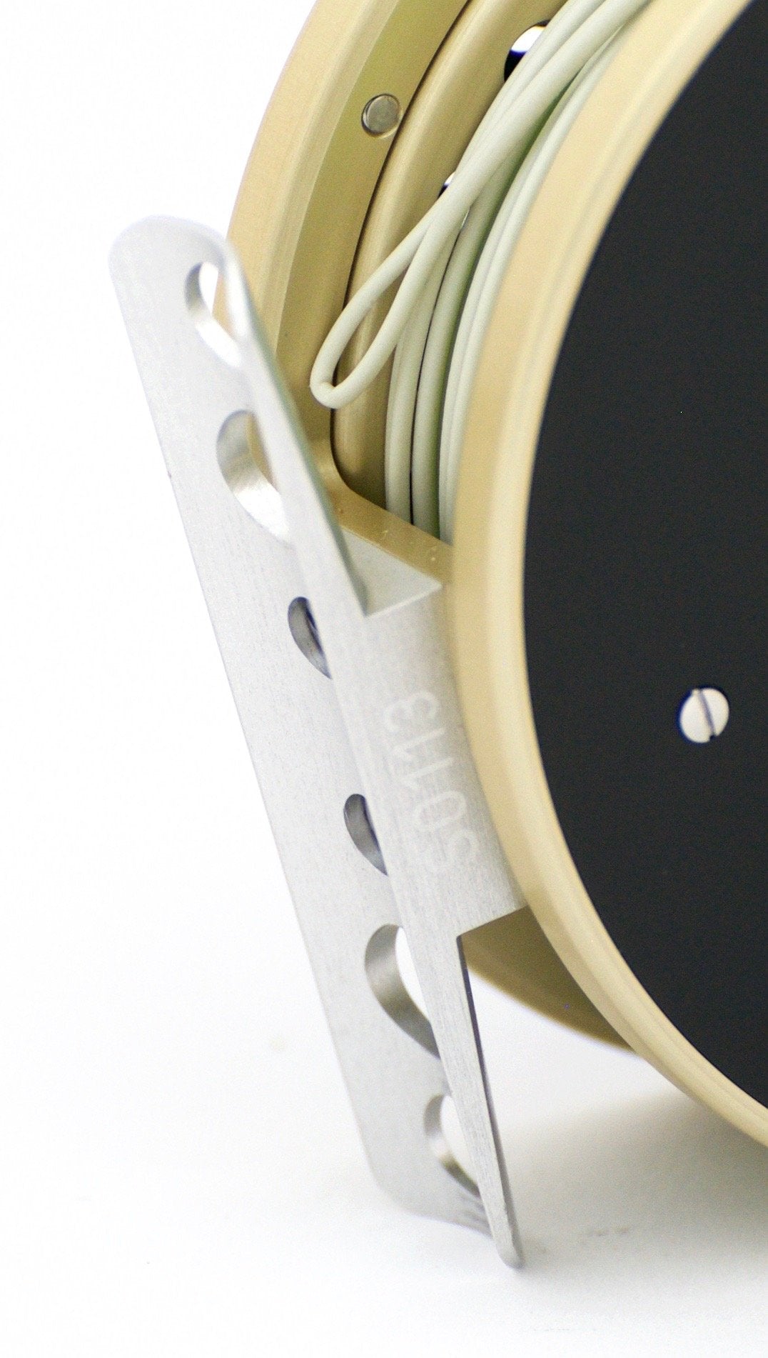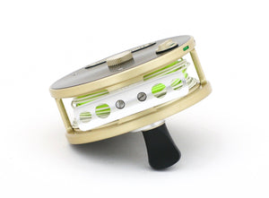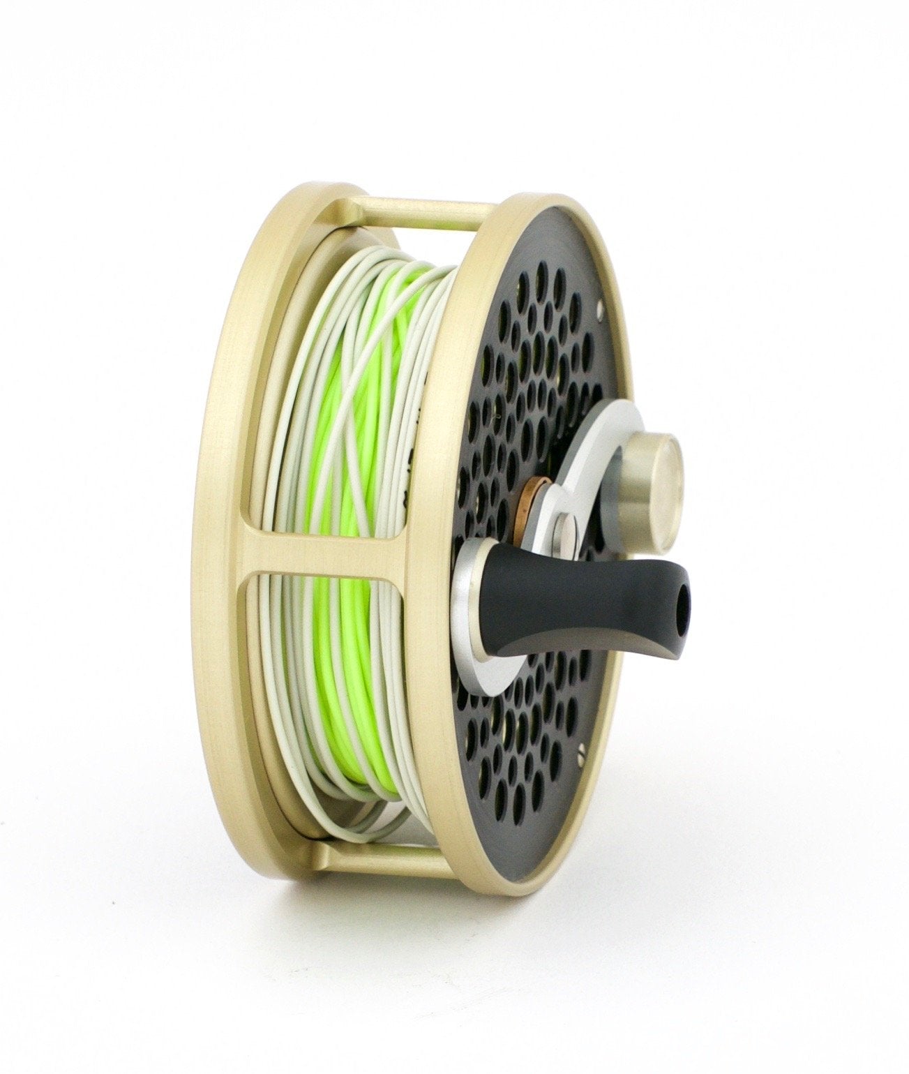Spring creeks offer a unique opportunity to fish light leaders and small rods. Our "Classic" model fly reels are lightweight, and their simple click drag is designed specifically for these unique fisheries. Their "S" handle and classic gold & black finish make them a perfect match to any cane rod. They have a unique side-cover lock that enables the fisherman to change spools and pre-set the internal drag adjustment. Each Classic reel is serialized and comes with an Arne Mason leather case.