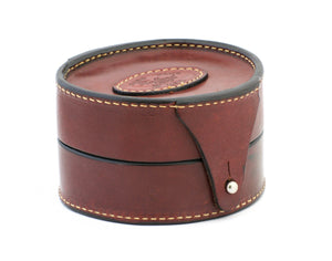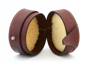 For sale here is a Holland clamshell leather reel case. Unused condition. Designed for reels up to 3 1/2" diameter.