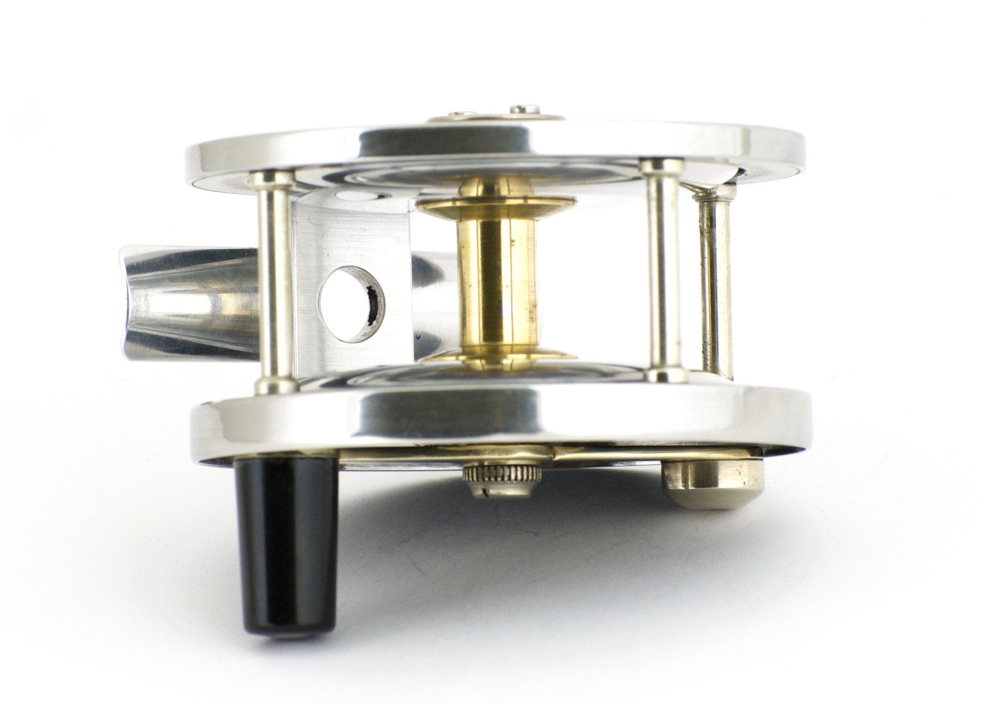 This is the second Edward Vom Hofe style reel Joe made and the first ever Jancurias reel made with ebonite sideplates. 3" diameter. 1.05" pillar length / spool width. Weight - 6 1/2 oz. Excellent used condition with no issues. Comes with Arne Mason leather case with bridle tan hide and red baize lining.