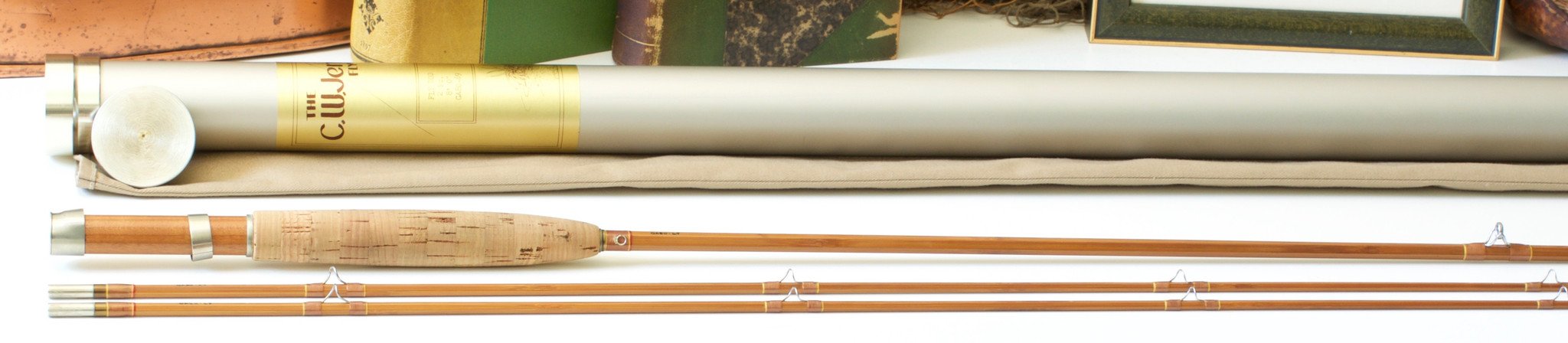 For sale here is a Charlie Jenkins Model GA80 bamboo rod. The rod is in excellent+ original condition with no issues. 8 feet, 2/2 format for a 4 or 5 weight line. The rod weighs 4 oz. Nickel silver cap and ring. Chestnut thread wraps with yellow edges and a few wraps of red at the keeper, ferrules, and tip tops. Oxidized nickel silver ferrules. Bright guides. Includes original bag and labeled tube. The rod has a very pleasant medium action and a progressive taper. A very capable rod, whether dry fly fishing or swinging wets. A wonderful all-around trout rod.