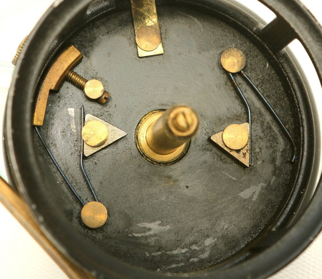 For sale here is a 3 1/8” Young’s made reel badged for Farlows. Two screw latch, black enameled finish with very little wear – I doubt this reel has seen much, if any, use. Foot is original and unmolested, erinoid handle, no undue spindle play. Dark red agate in good order.