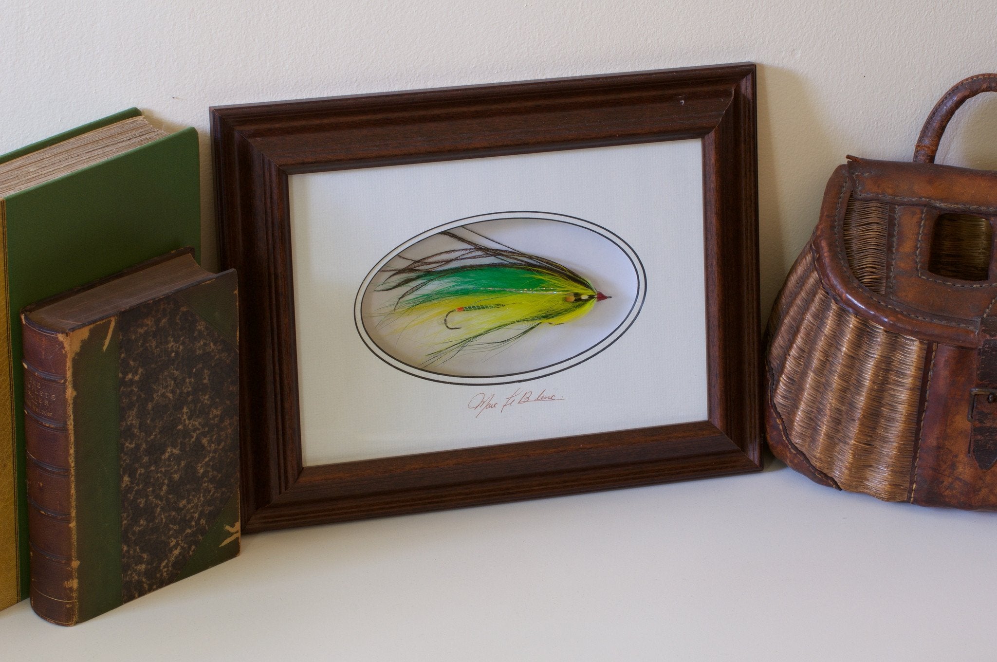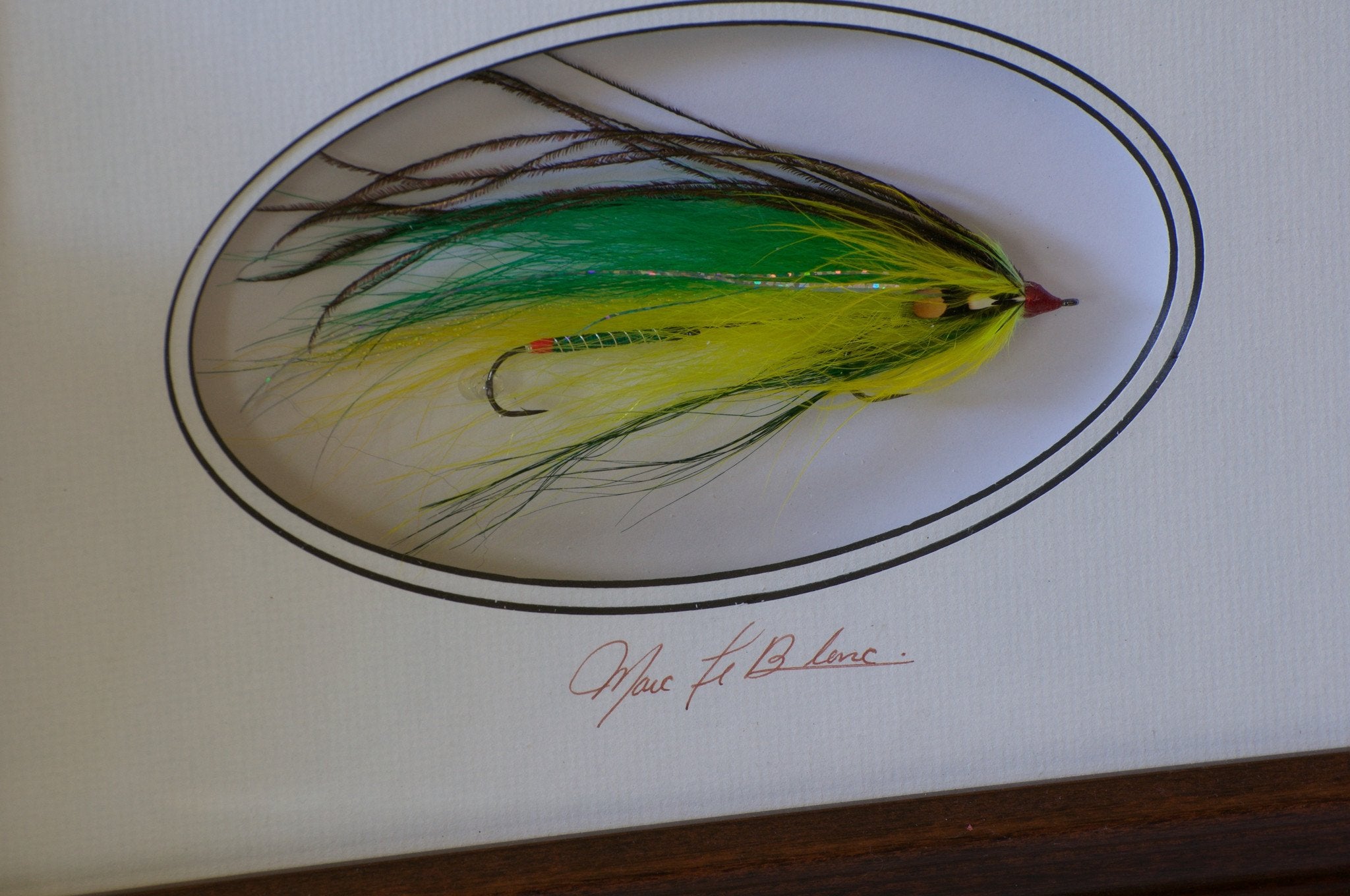 For sale here is a gorgeous streamer fly tied by Marc LeBlanc of New Brunswick, Canada. A super high-quality job all around, the fly is amazing and the framing job is extremely well done. Dimensions are 14" x 11".