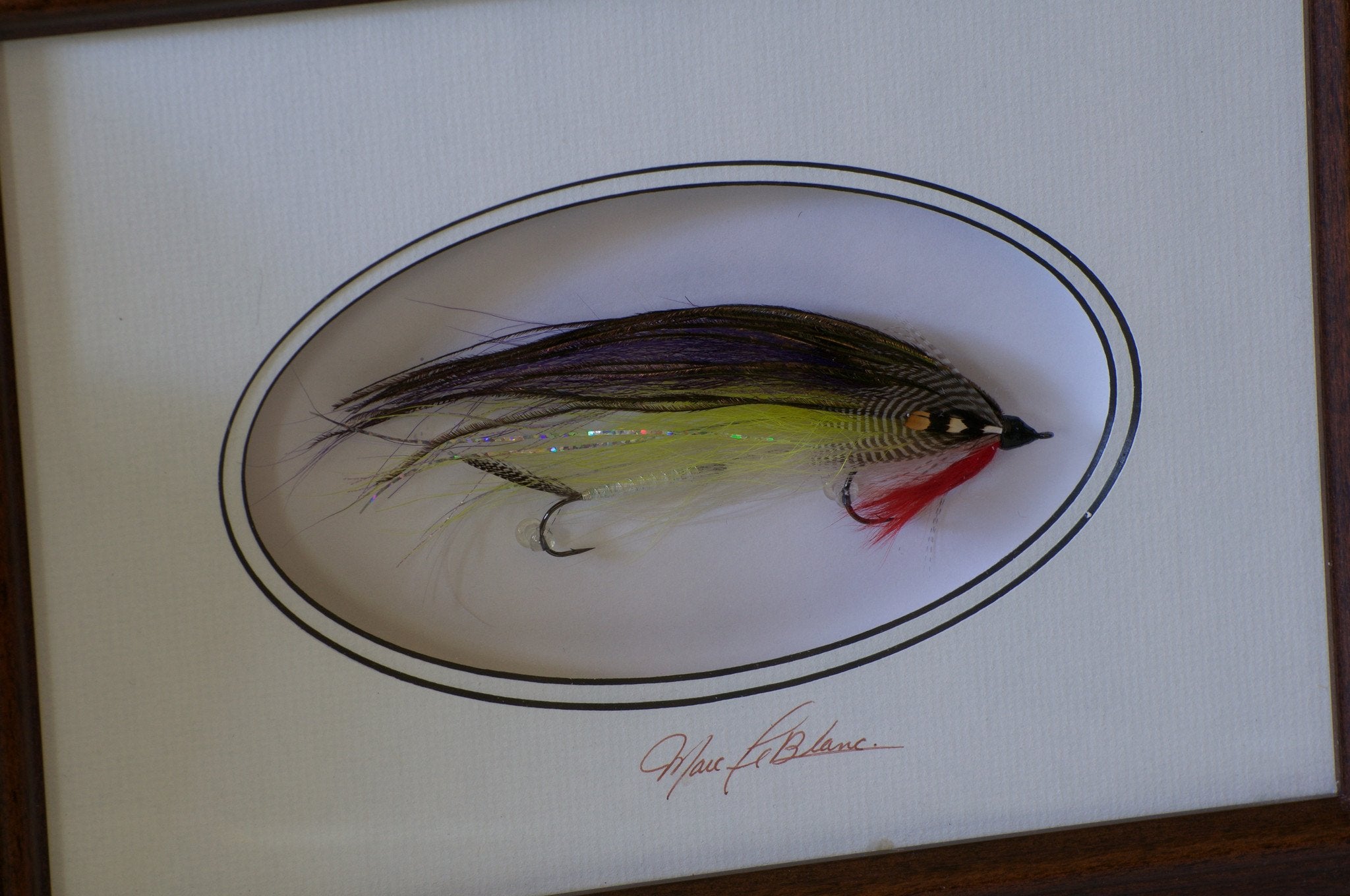 For sale here is a gorgeous streamer fly tied by Marc LeBlanc of New Brunswick, Canada. A super high-quality job all around, the fly is amazing and the framing job is extremely well done. Dimensions are 14" x 11".