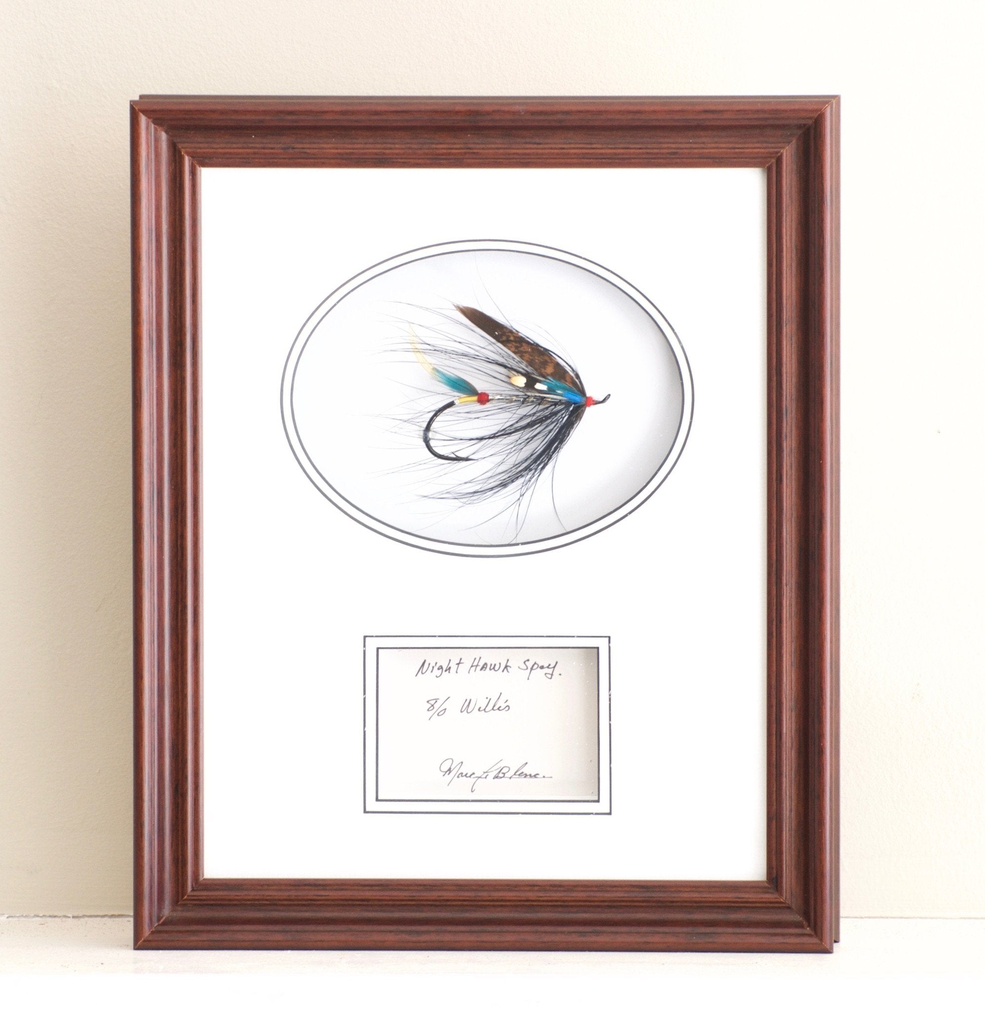 For sale here is a gorgeous Night Hawk spey-style fly tied on a 8/0 Willis hook by Marc LeBlanc of New Brunswick, Canada. A super high-quality job all around. The frame dimensions are 11" wide by 13" tall by 1 3/4" deep.