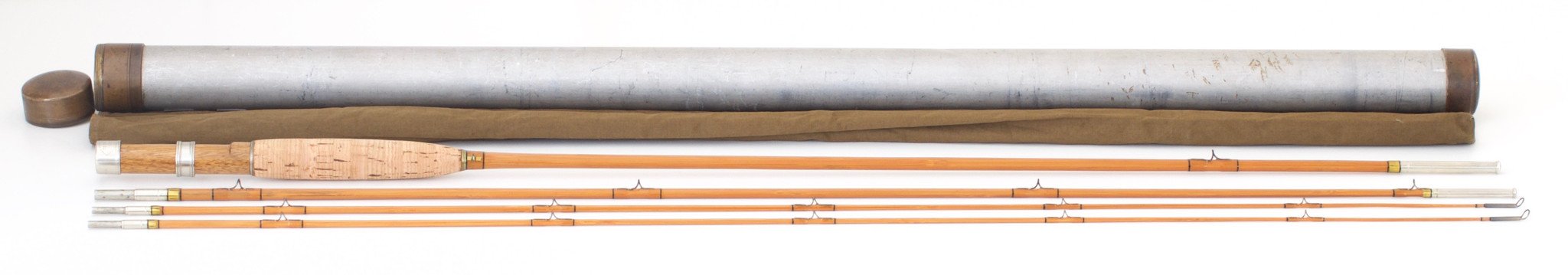 For sale here is a pre-fire Leonard Catskill Model 36 - 7'6" 3/2 4wt bamboo rod. The rod is in excellent restored condition. Tim Zietak performed the restoration very nicely. All sections are full length and straight. The rod features characteristic Leonard, straw-colored cane. Clear transparent wraps with black tipping. Blued guides. Handsome swelled butt. Bronze hook keeper. Finely sculpted nickel silver checks. Classic, cigar grip 4 1/2" in length. The grip has been cleaned and is ridged in places. Bright nickel silver cap and ring reel seat with a mortised butternut spacer. The bright nickel silver ferrules are size 13/64 and 9/64 with a pleasing fit. There is a very slight tick in the ferrule connection from the mid to one of the tips. The rod weighs 3 3/8 oz. Medium side of medium-fast action. The rod includes its original tube and a replacement bag with five slots rather than four.