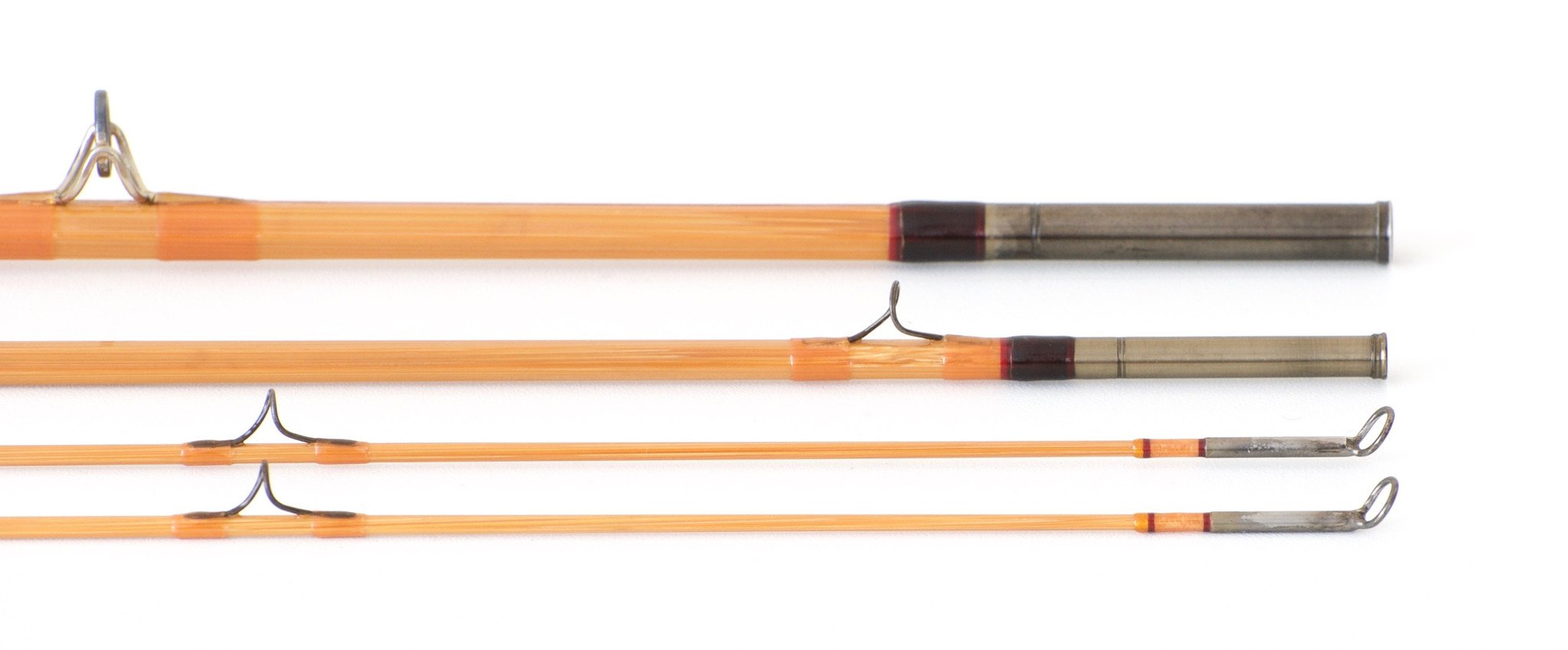 The rod action is medium-fast. The stout butt section with the fine tips make for an excellent dry-fly rod, though the rod is by no means limited to dry-fly fishing. Includes original bag and tube with fine brass fittings. The early-era Maxwell rod tubes were not like the later ones with squared-off brass ends.