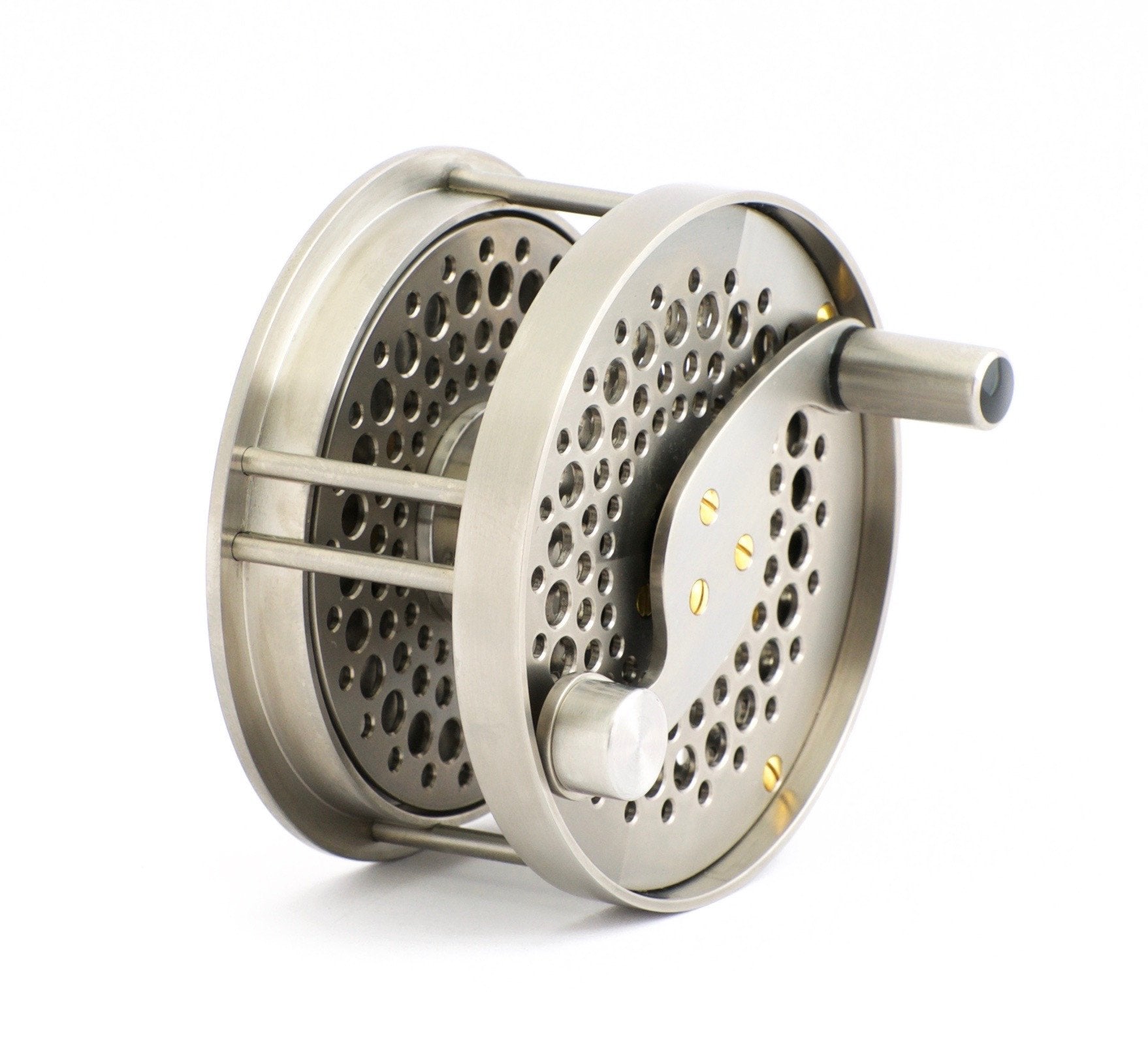 For sale here is a limited edition LH Design titanium fly reel. Serial #001 out of approximately 12-14 made. Mint condition. Leen Huisman from The Netherlands has been making fly rods and reels for over 30 years. His designs and exquisite craftsmanship are very well-respected worldwide, and by reviewing the photos of this reel, you will see why. Both sideplates feature different shades of the beautiful titanium. The screws are gold plated. The reel has a fixed two-way click/pawl drag. Set up for left hand retrieve but can be switched easily to right. The reel's diameter is 3" and the pillar length is 1.10". The reel weighs 7 3/8 oz. Marked for a #4 line but also capable of holding a #5 line plus a fair amount of backing. Included with the sale is a finely crafted wooden presentation box as well as the labeled cover shown in the photos. Don't miss out on this one!