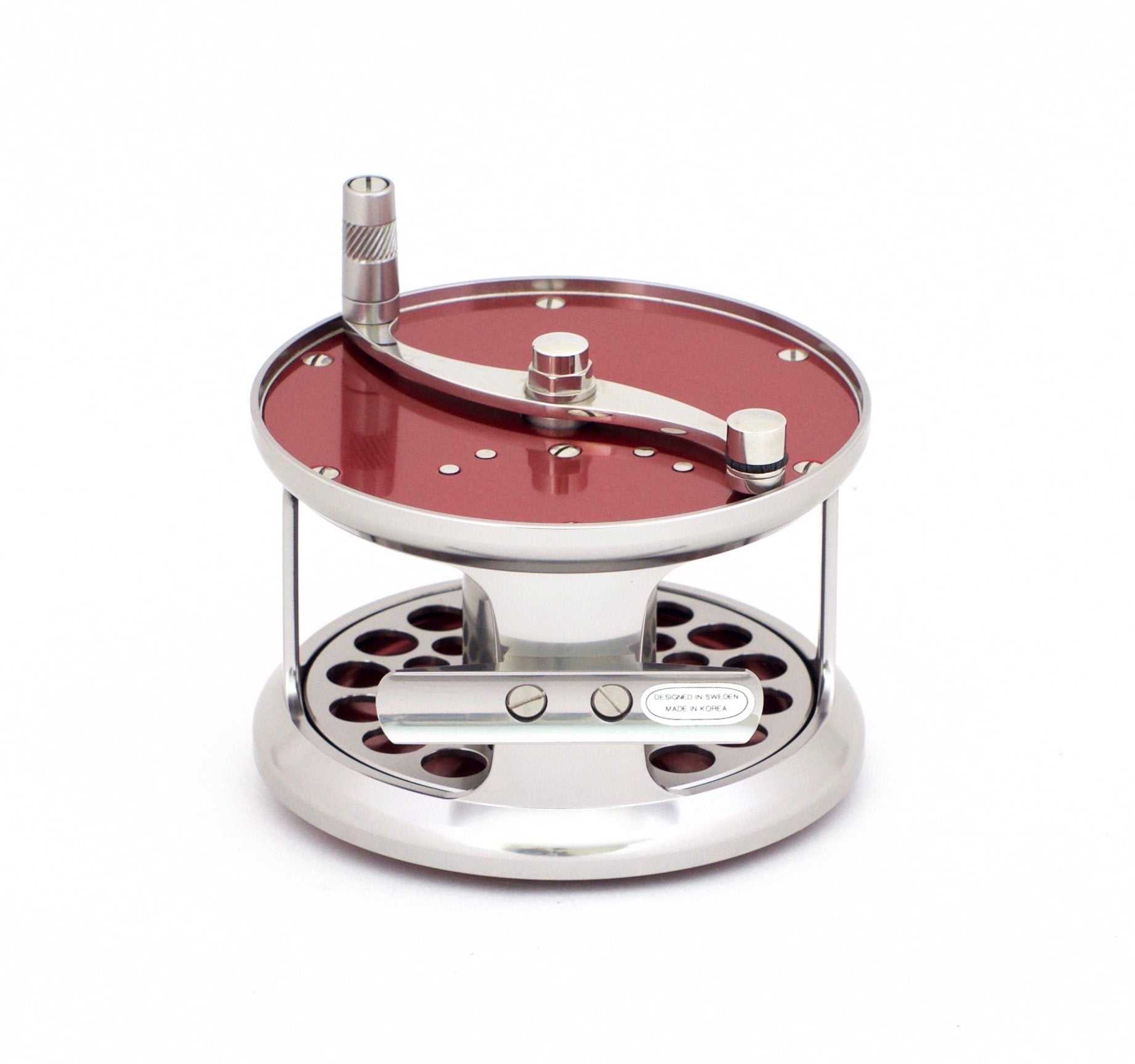 For sale here is a Loop Classic 10/13 fly reel. Unused with box, leather case, and hex/allen wrench. Designed in Sweden. Set up for left-hand retrieve. Capacity is WF12F+ 250/30lb. Frame diameter ~ 4 1/8". Frame width ~ 2 1/2". Spool width ~ 1 11/16". Weight 13.85 oz.