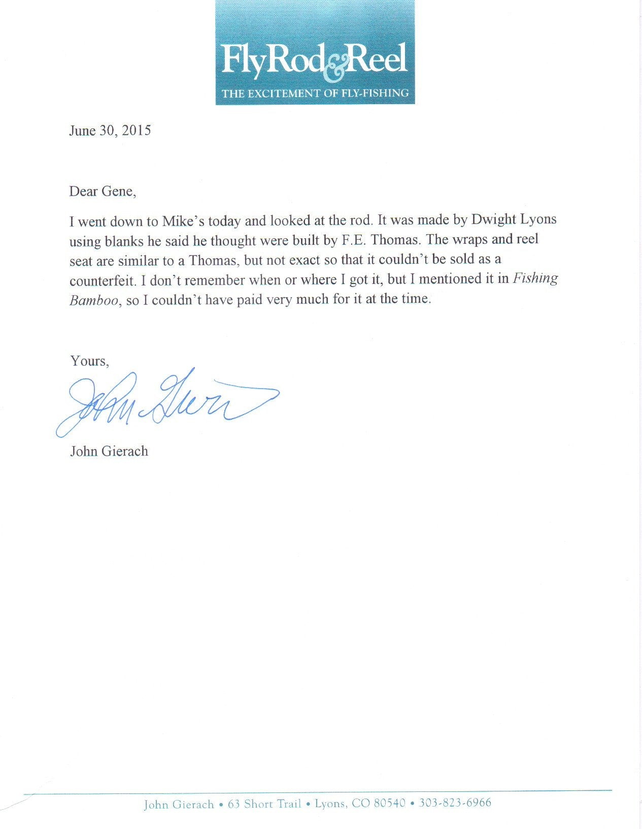 For sale here is a beautiful, classic FE Thomas styled, Dwight Lyons 7'6" 4wt bamboo fly rod. This rod was previously owned by John Gierach and is mentioned on page 62 in his book, "Fishing Bamboo". Mr. Lyons used original bamboo from the Thomas Rod Co.