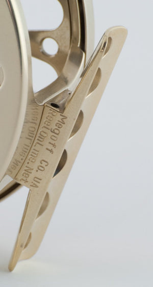 For sale here is a Megoff titanium salmon/steelhead fly reel made by Alex Kaplun - Model MDS 1012 DD TI. The reel is machined from solid, high-grade titanium and built to last longer than any of us will! The reel has a skeletal frame design, carbon fiber disc drag, and outgoing click. Made in 2000. This is Serial # 1 of this model and one of the first ever Megoff titanium reels made! Made for 10-12wt lines with plentiful backing.