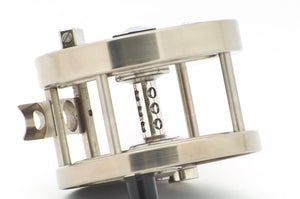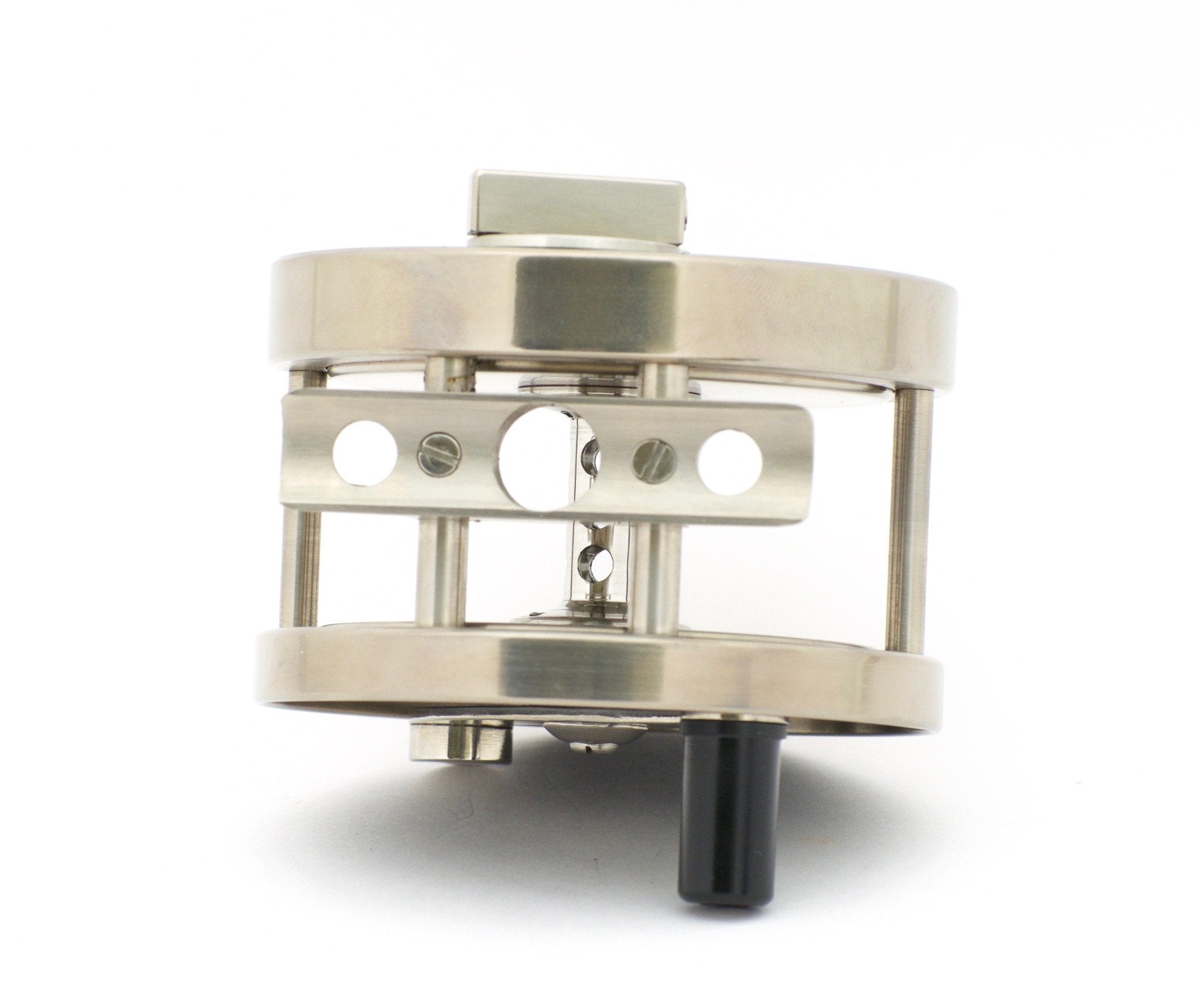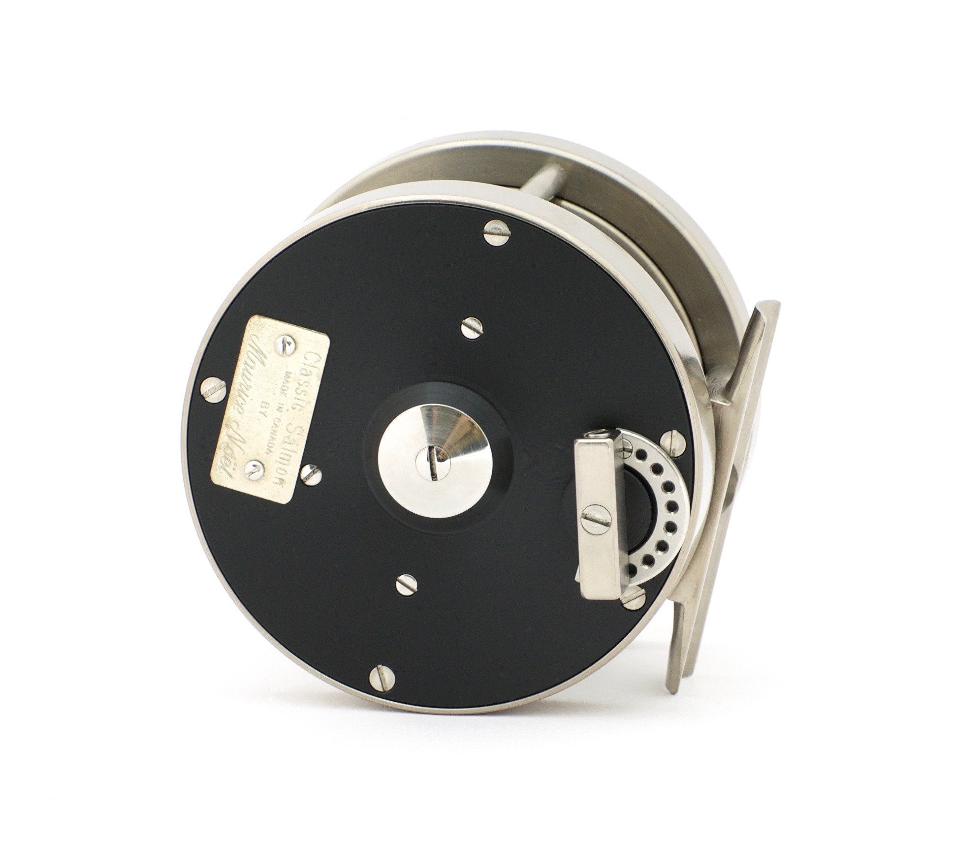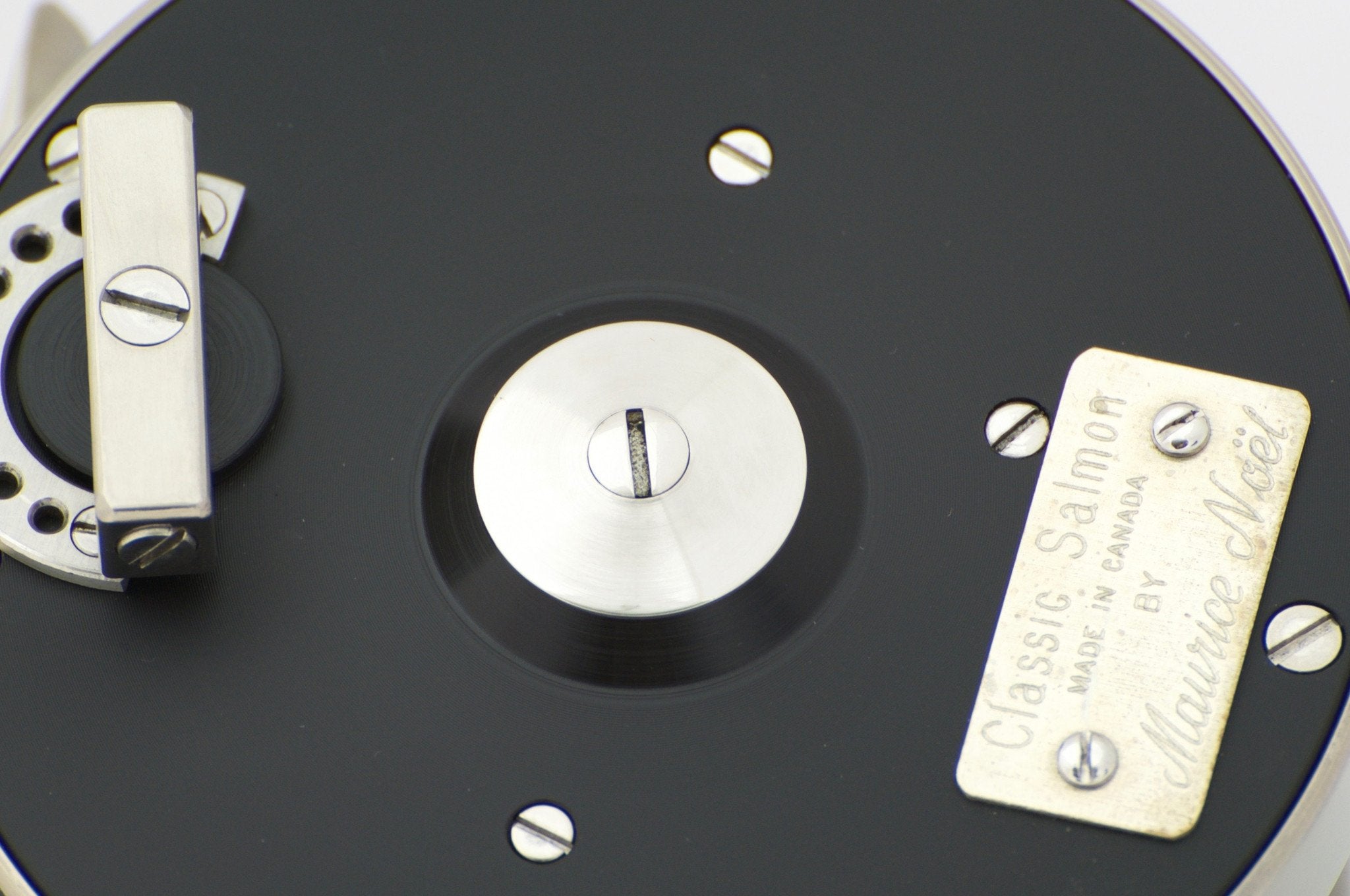 For sale here is an extremely nice salmon reel made by Maurice Noel of Canada. Model SA200TD. The reel is a direct drive (SA - single action), right-hand retrieve reel machined from titanium with delrin side plates. Like new condition. Comes with original drawstring bag.