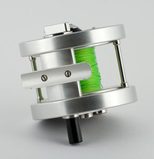 For sale here is a Maurice Noel salmon/steelhead reel - Model M300A. Anodized aluminum rims and sideplates. Multiplier. Adjustable drag knob on the back plate works perfectly throughout its range. The reel is left hand retrieve and is in excellent+ condition with only some very slight use marks. Diameter: 3 1/2" / Spool width: 1 1/2" / Weight: 14 1/4 oz. Capacity WF9F + 200yds 20lb backing. Another very fine and smoothly operating reel from one of the finest bench-made reel makers today!